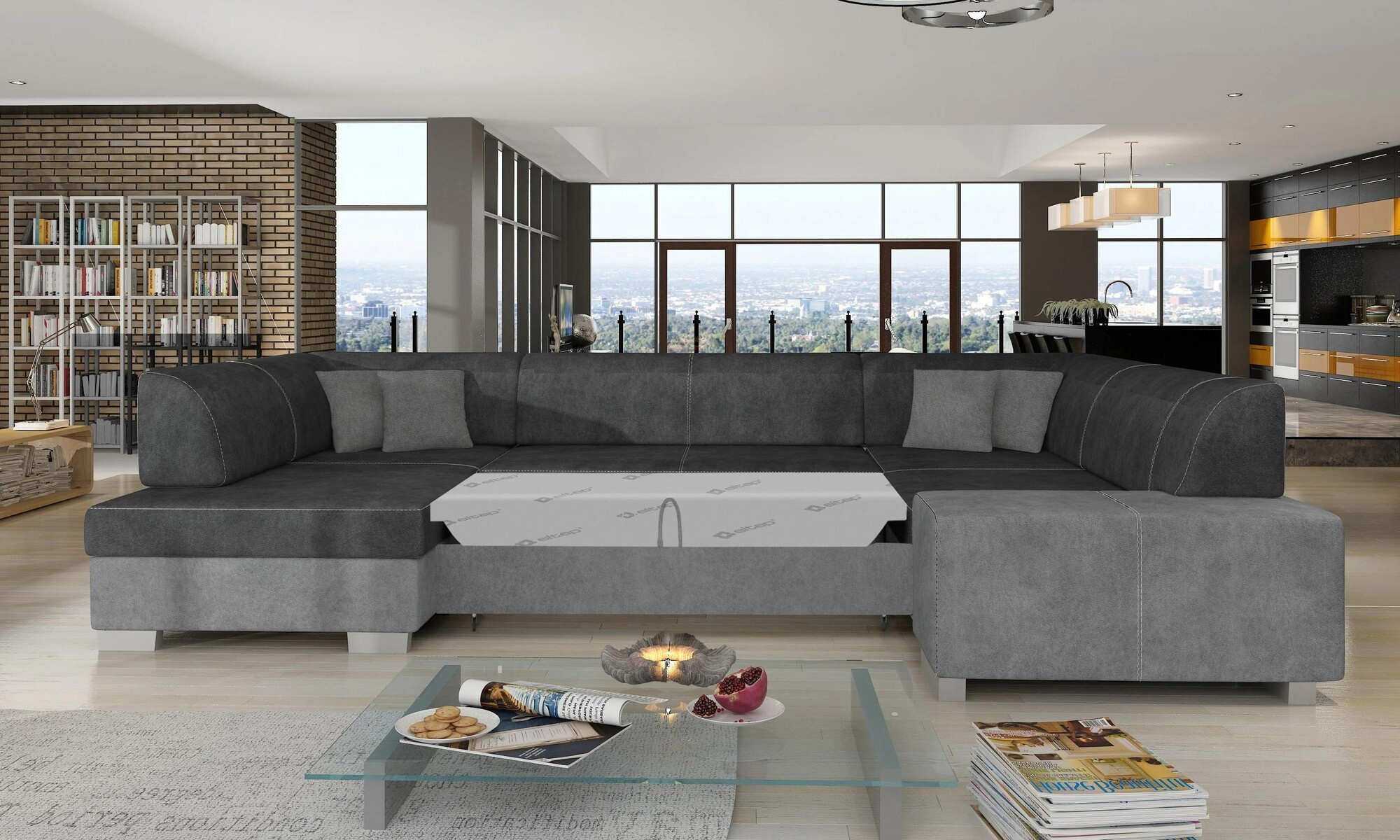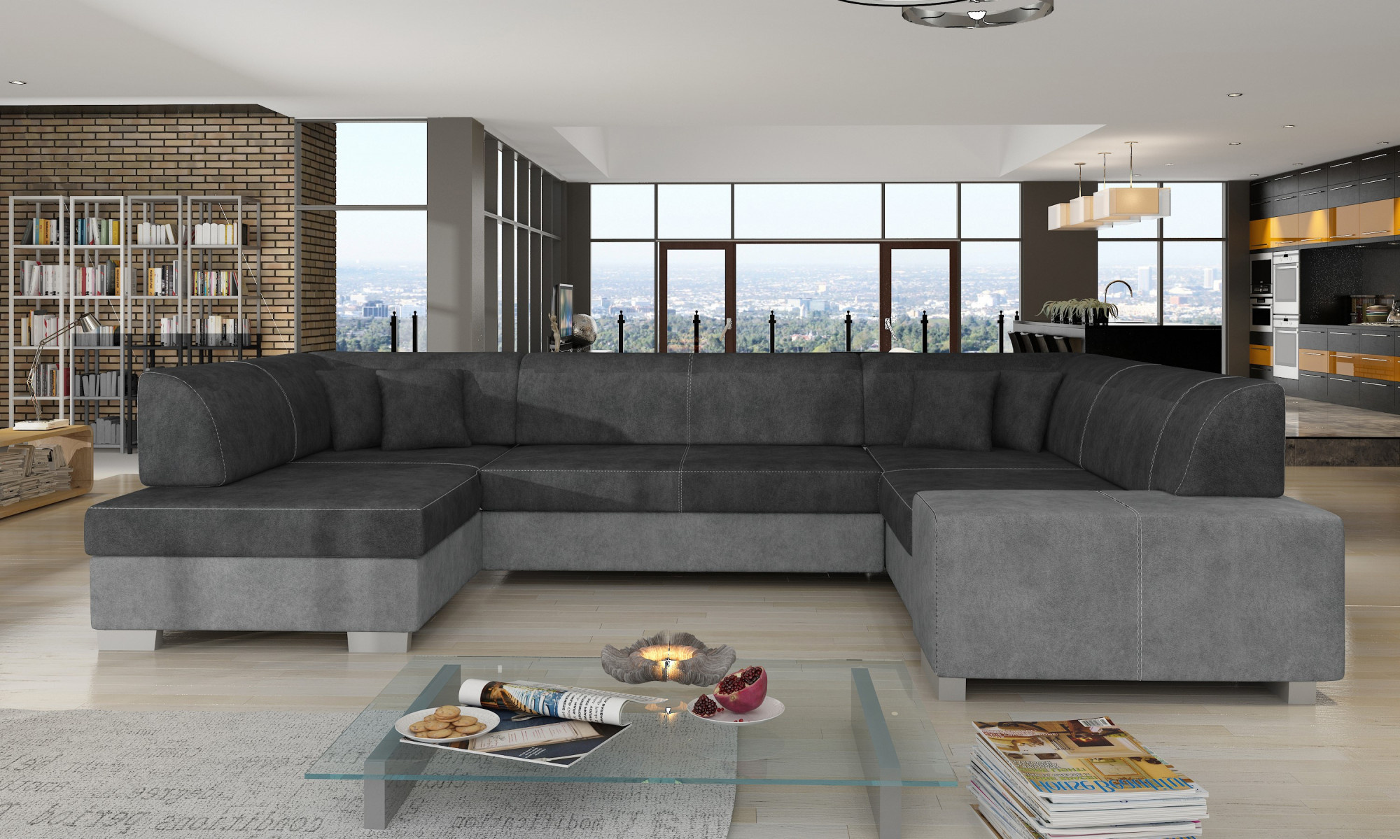 Havana is a spacious, luxurious upholstered corner sofa of a sizable size, measuring 320 x 167/207 x 73 cm, so it provides ample space for relaxation. The U-shaped piece of furniture has a comfortable, soft seat made of durable corrugated spring, as well as flexible T30 foam, so the whole thing is dent-resistant. Our corner sofa is equipped with a sleeping function and ample storage for bedding. The intuitive dolphin unfolding system makes it easy to turn the sofa into a 280x125cm bed gaining a really large area for a night's rest. Additional specifications of our Havana corner sofa include: classic, proven design, attention to detail of workmanship, simple geometric cut. The corner sofa also comes with large decorative cushions. Havana is the quintessence of comfort and good style, which will perfectly fit into more than one interior.