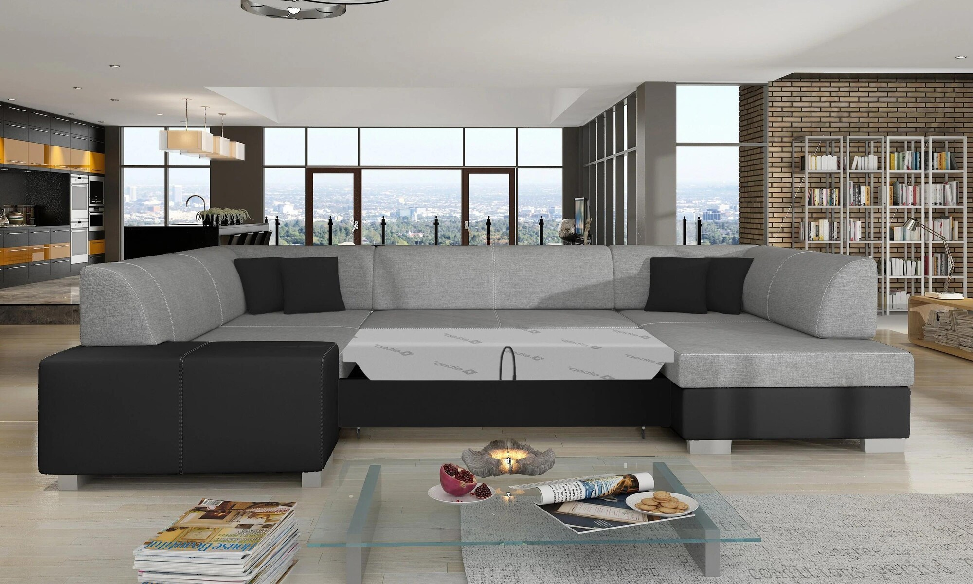 Havana is a spacious, luxurious upholstered corner sofa of a sizable size, measuring 320 x 167/207 x 73 cm, so it provides ample space for relaxation. The U-shaped piece of furniture has a comfortable, soft seat made of durable corrugated spring, as well as flexible T30 foam, so the whole thing is dent-resistant. Our corner sofa is equipped with a sleeping function and ample storage for bedding. The intuitive dolphin unfolding system makes it easy to turn the sofa into a 280x125cm bed gaining a really large area for a night's rest. Additional specifications of our Havana corner sofa include: classic, proven design, attention to detail of workmanship, simple geometric cut. The corner sofa also comes with large decorative cushions. Havana is the quintessence of comfort and good style, which will perfectly fit into more than one interior.