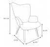 Kényelmes füles fotel színes patchwork anyagból, amely bútor mind a nyugodt pihenéshez, mind könyvolvasáshoz vagy szoptatáshoz. A mély háttámlájú és alacsony ülésű szék nyugalmat és kényelmet biztosít. A szék fa, forgatott, kaucsuk lábakkal természetes színben tökéletesen illeszkedik a modern, boho, japandi és skandináv stílusú belső terekbe. Díszes, fehér szövet, amely 100% poliészterből készült, geometrikus steppeléssel lett díszítve. A szék súlya 9 kg. Max. a szék terhelhetősége 120 kg. Egyszerű összeszerelést igényel (lábak rögzítése csavarozással). Nem rakódik le. Nem alkalmas kültéri használatra. A habszivacs vastagsága az ülésen 28kg/m3. A háttámla habsűrűsége: 24kg/m3