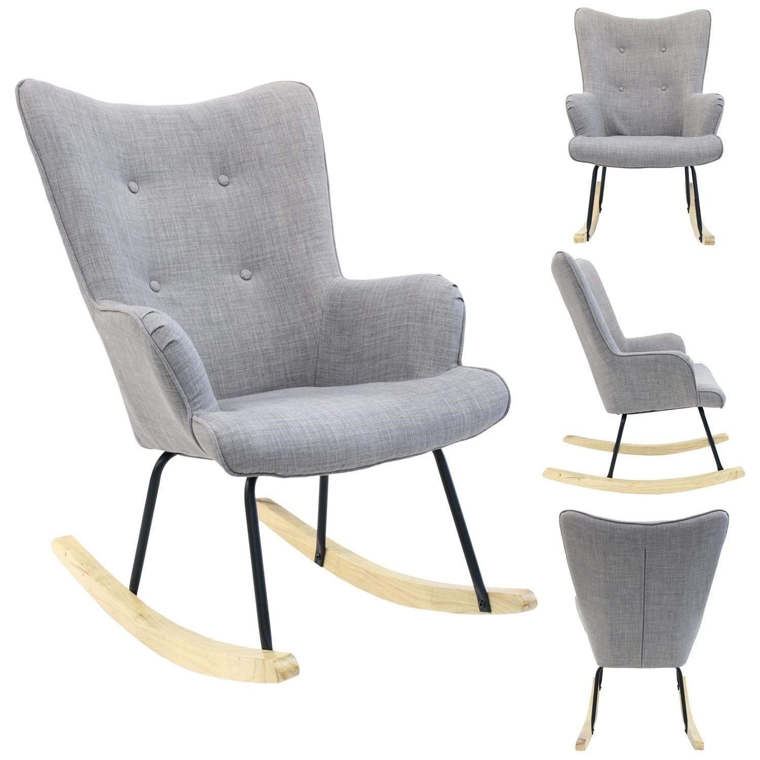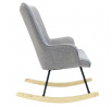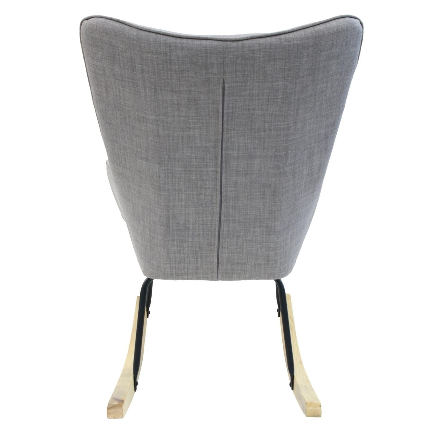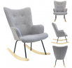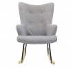 Kényelmes, szürke szövetből készült hintaszék füles fotel, amely ideális a nyugodt pihenéshez, könyvolvasáshoz vagy szoptatáshoz. A mély háttámlájú és alacsony ülésű szék nyugalmat és kényelmet biztosít. Fém lábú, természetes színű fa hintalábakkal rendelkező szék tökéletesen illeszkedik a modern, boho, japandi és skandináv stílusú belső terekbe. Díszes, szürke szövet, amely 100% poliészterből készült, gombokkal lett díszítve. A szék súlya 8,59 kg. Max. a szék terhelhetősége 110 kg. Egyszerű összeszerelést igényel. Nem rakódik le. Nem alkalmas kültéri használatra. A habszivacs vastagsága az ülésen 24 kg/m3. A háttámla habsűrűsége: 24kg/m3