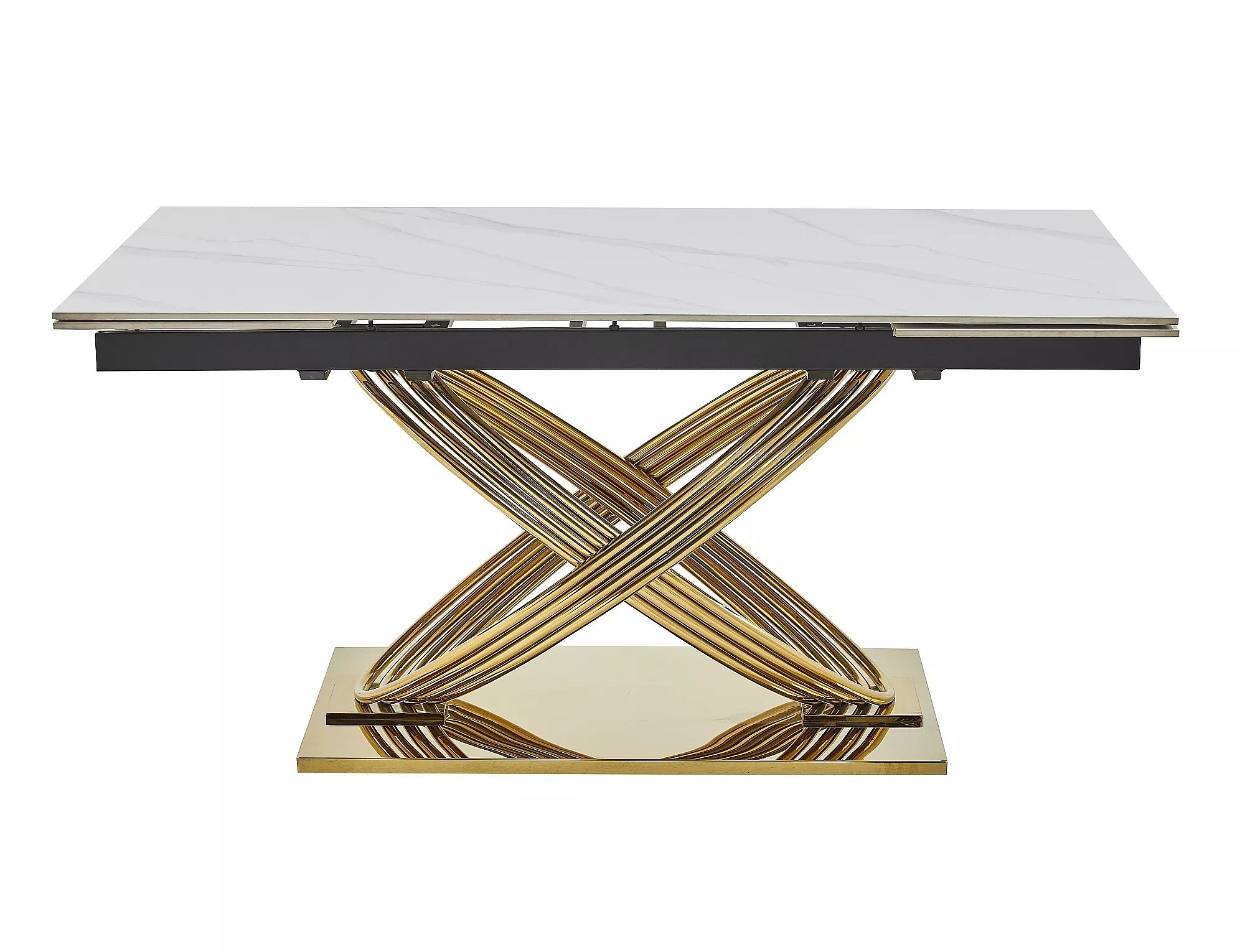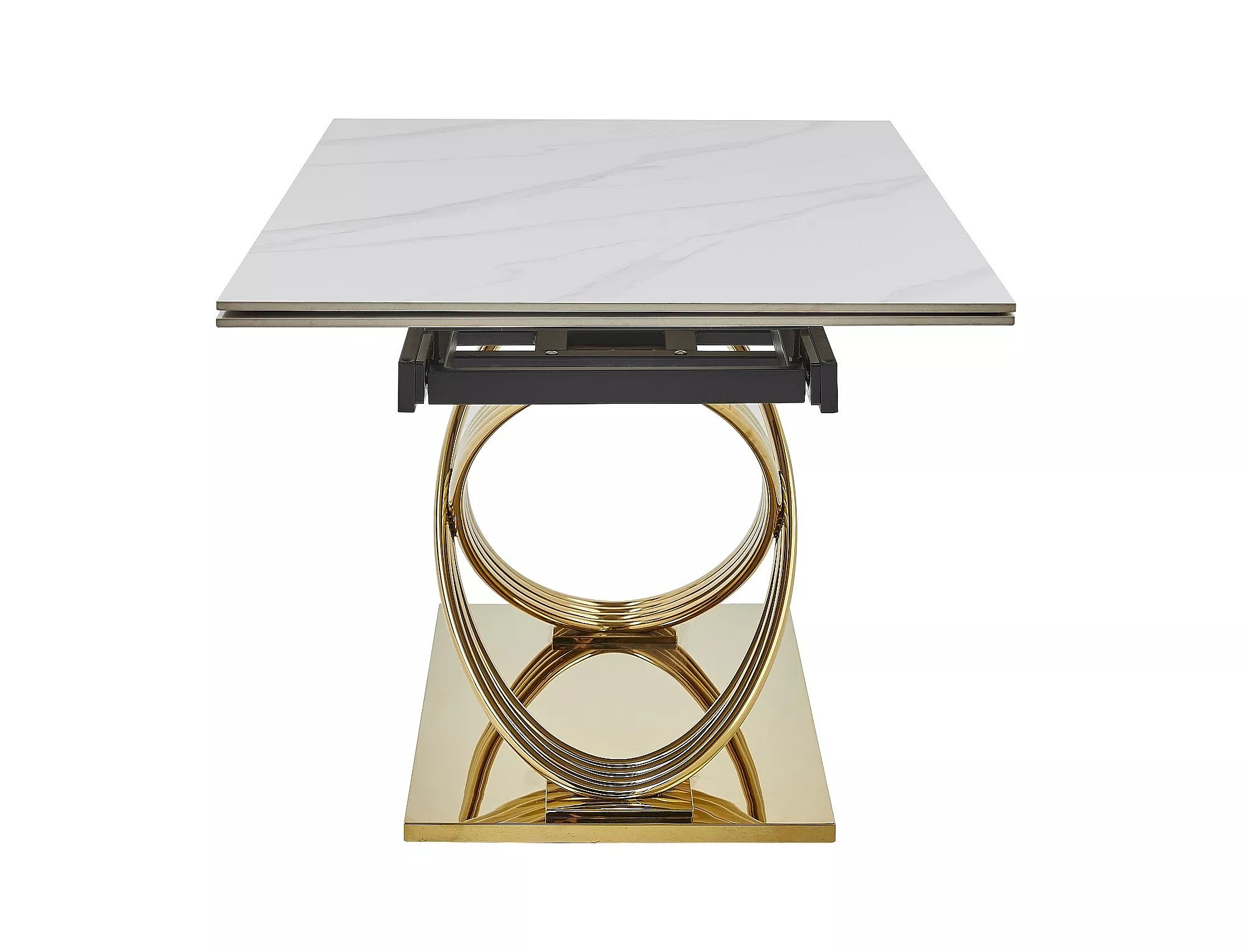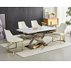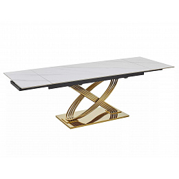 HERMES II étkezőasztal 160(240)x90cm, Fehér márvány hatás/Arany