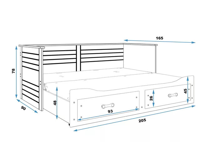 HERMES PODWÓJNE RAMA GRAFIT BEZ MATERACY 80 X 200 KPL