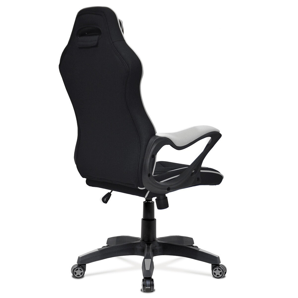 Herní a kancelářské křeslo E-racer značky Autronic vyniká sportovním designem kombinujícím šedou a černou látku, která je prodyšná a příjemná na dotek. Konstrukce sedáku a opěradla je vyplněna hustou pěnou, která zajišťuje komfortní sezení i při delším používání. Pevné čalouněné područky doplňují ergonomický tvar křesla, zatímco opěrka hlavy poskytuje dodatečnou podporu krční páteři. Výškově nastavitelný houpací mechanismus umožňuje plynulé nastavení výšky sedáku a jemný pohyb pro uvolnění svalstva během práce nebo hraní. Stabilitu zajišťuje plastový kříž s pěti kolečky, která jsou vhodná pro různé typy podlahových krytin a umožňují snadnou mobilitu. Celkový design křesla podporuje správné držení těla a komfort při dlouhodobém sezení, což ocení uživatelé v kanceláři i při herních aktivitách.