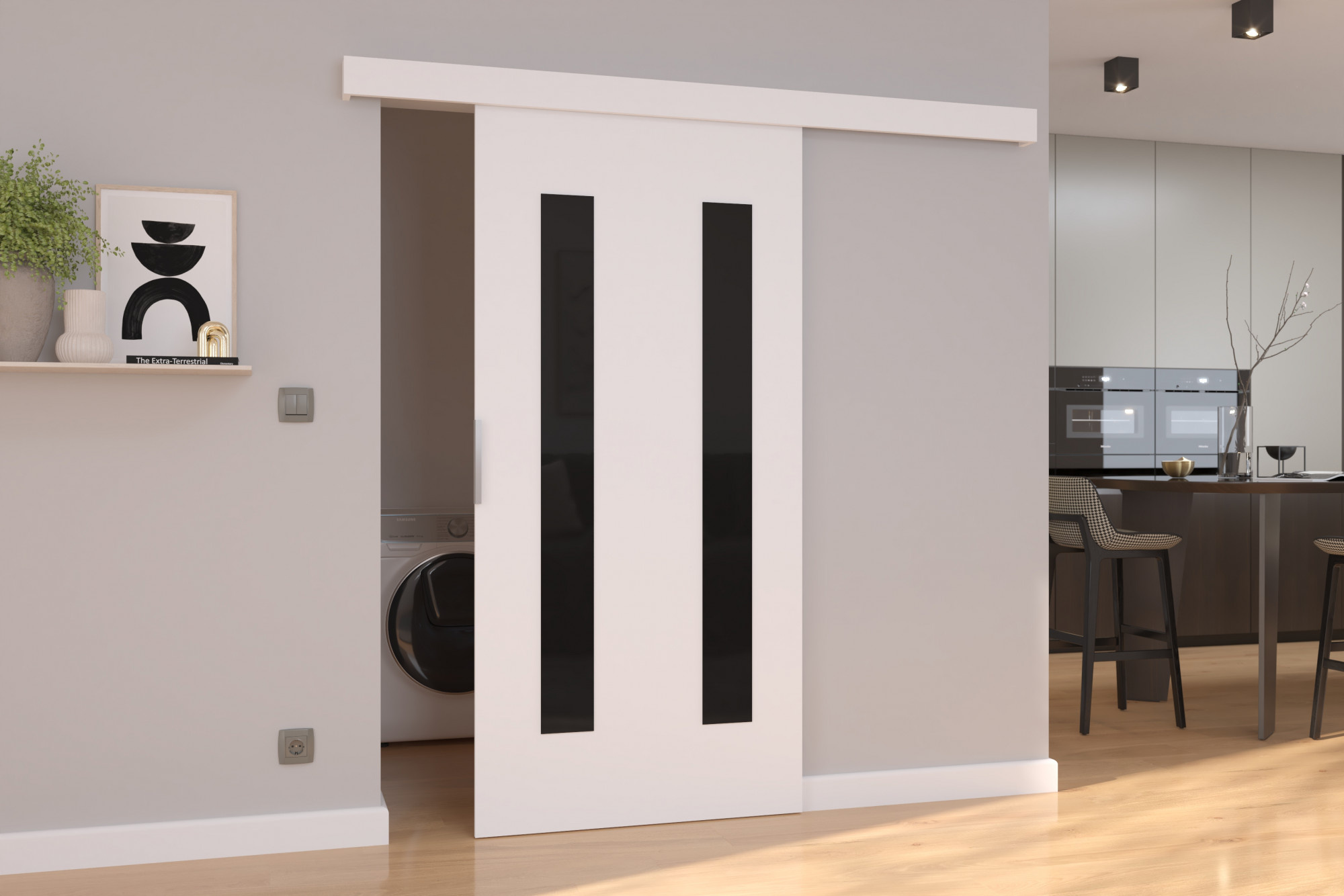 HERS 106 fehér+fekete Lacobel falra szerelhető tolóajtó