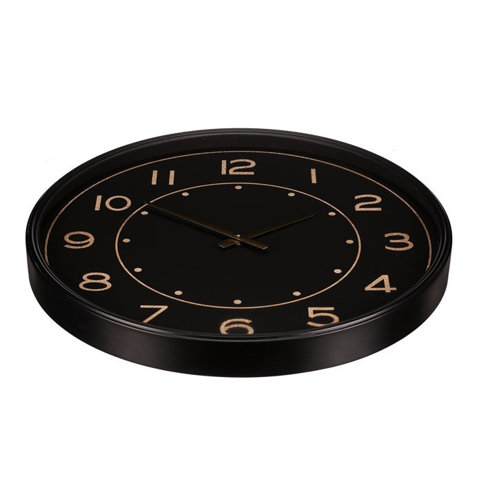 Hodiny nástěnné - pr. 60 cm, kovové, černé se zlatými čísly