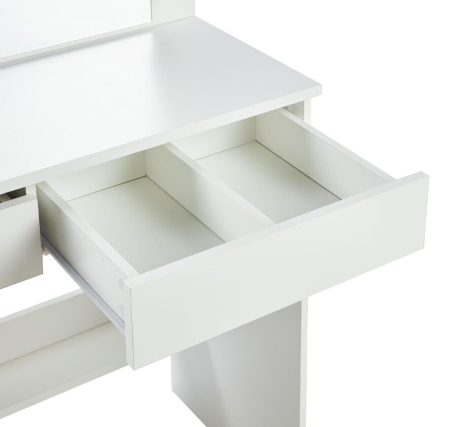 fésülködőasztal, méretek: 94/43/140 cm, anyag: furnérozott bútorlap, LED világítás, szín: fehér