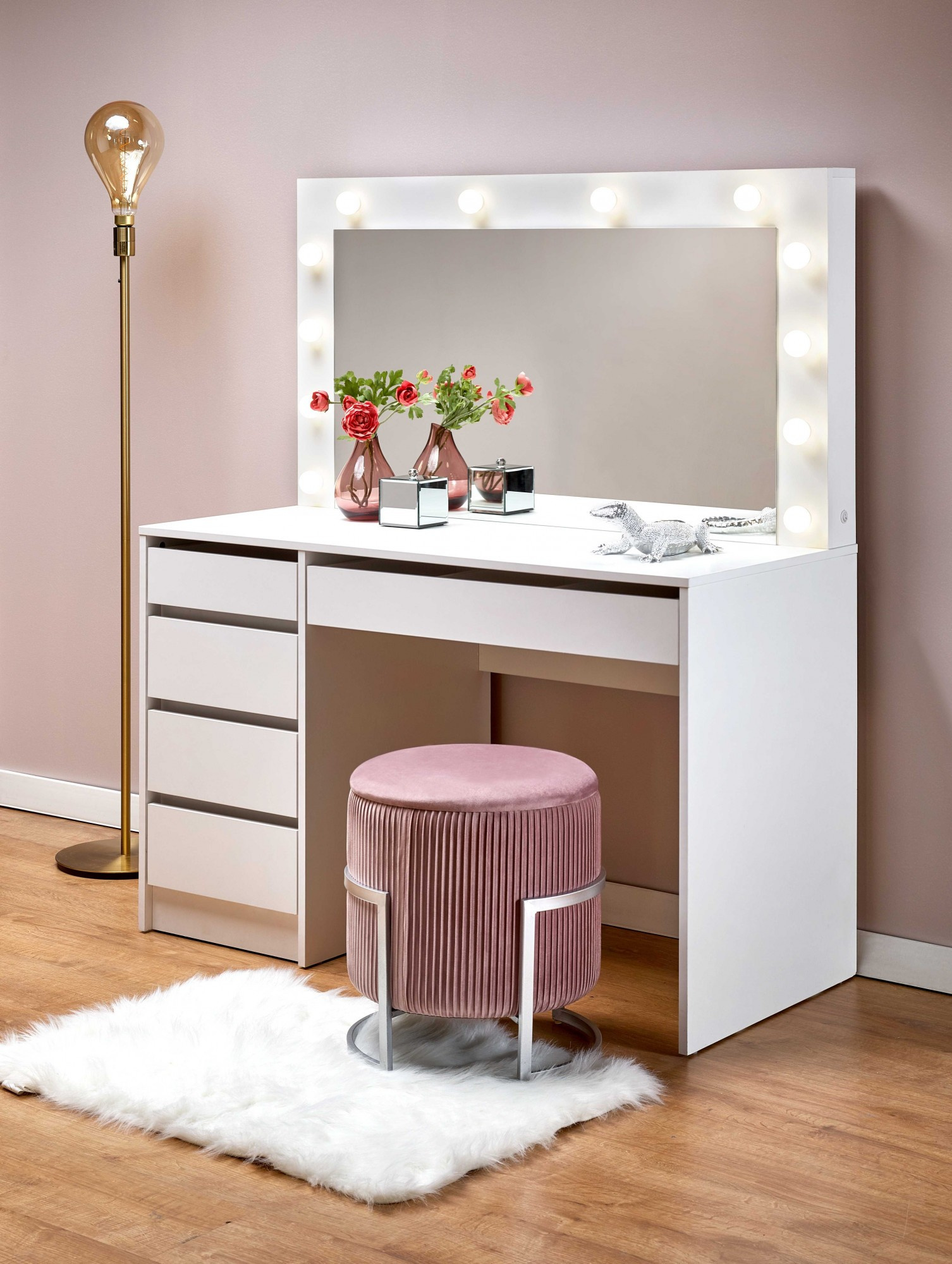 HOLLYWOOD XL fehér fésülködőasztal