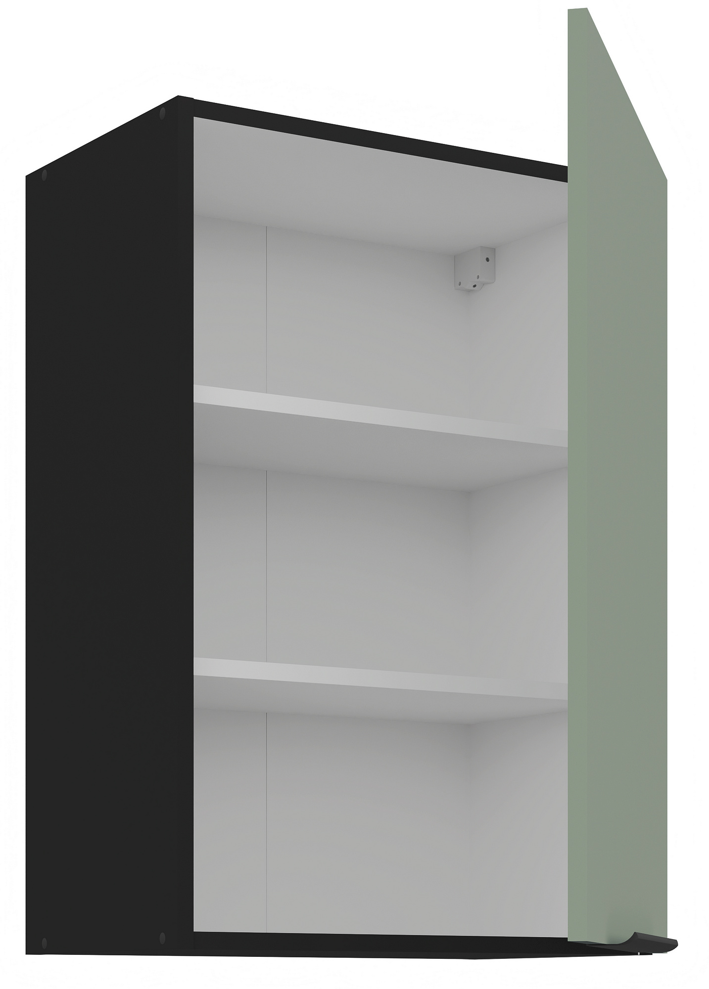Kuchyňské skřínky ARIA jsou vybaveny černými úchyty typu UA-HEXA s roztečí 64 mm - 320 mm, vyrobenými z hliníku, které dokonale ladí s celkovým designem. Panty s tichým dovíráním přispívají k pohodlnému a tichému používání. Zadní strana skříněk je z bílého HDF materiálu o tloušťce 2,5 mm, což zajišťuje stabilitu a pevnost konstrukce.