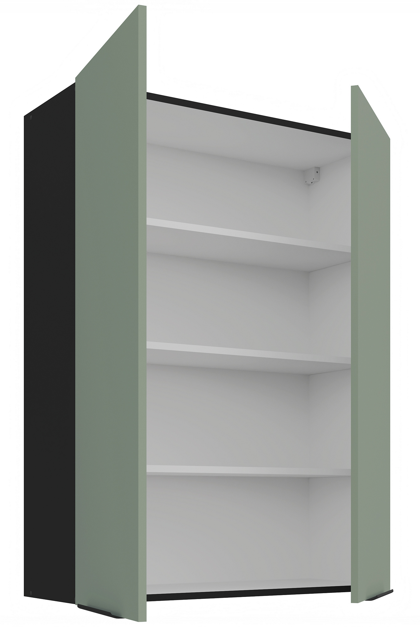 Kuchyňské skřínky ARIA jsou vybaveny černými úchyty typu UA-HEXA s roztečí 64 mm - 320 mm, vyrobenými z hliníku, které dokonale ladí s celkovým designem. Panty s tichým dovíráním přispívají k pohodlnému a tichému používání. Zadní strana skříněk je z bílého HDF materiálu o tloušťce 2,5 mm, což zajišťuje stabilitu a pevnost konstrukce.