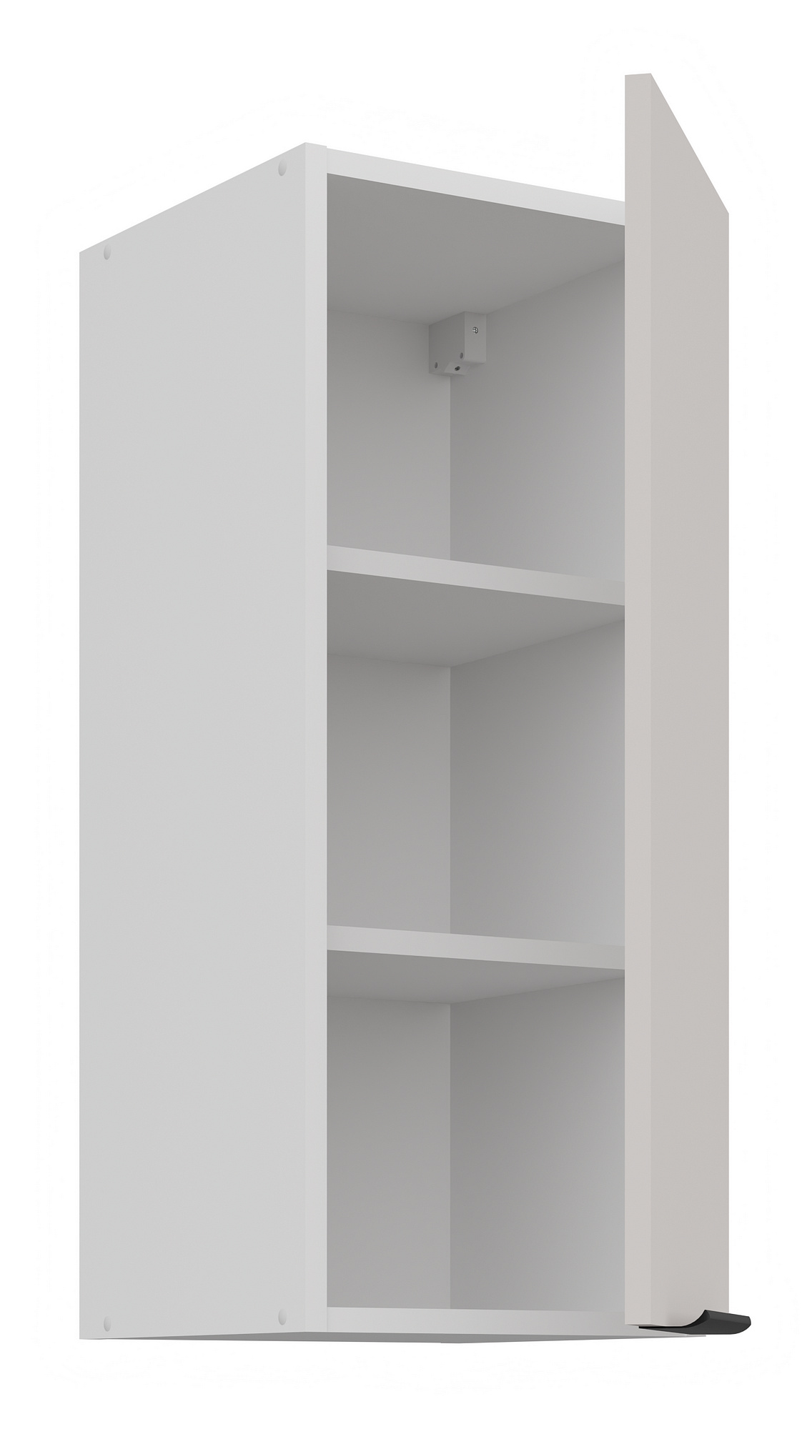 Dvířka skříňky jsou universální, což znamená, že je můžete namontovat jako pravé nebo levé, podle vašich potřeb a dispozice kuchyně. Vnitřek skříňky je v bílém provedení, což zajišťuje čistý a svěží vzhled.