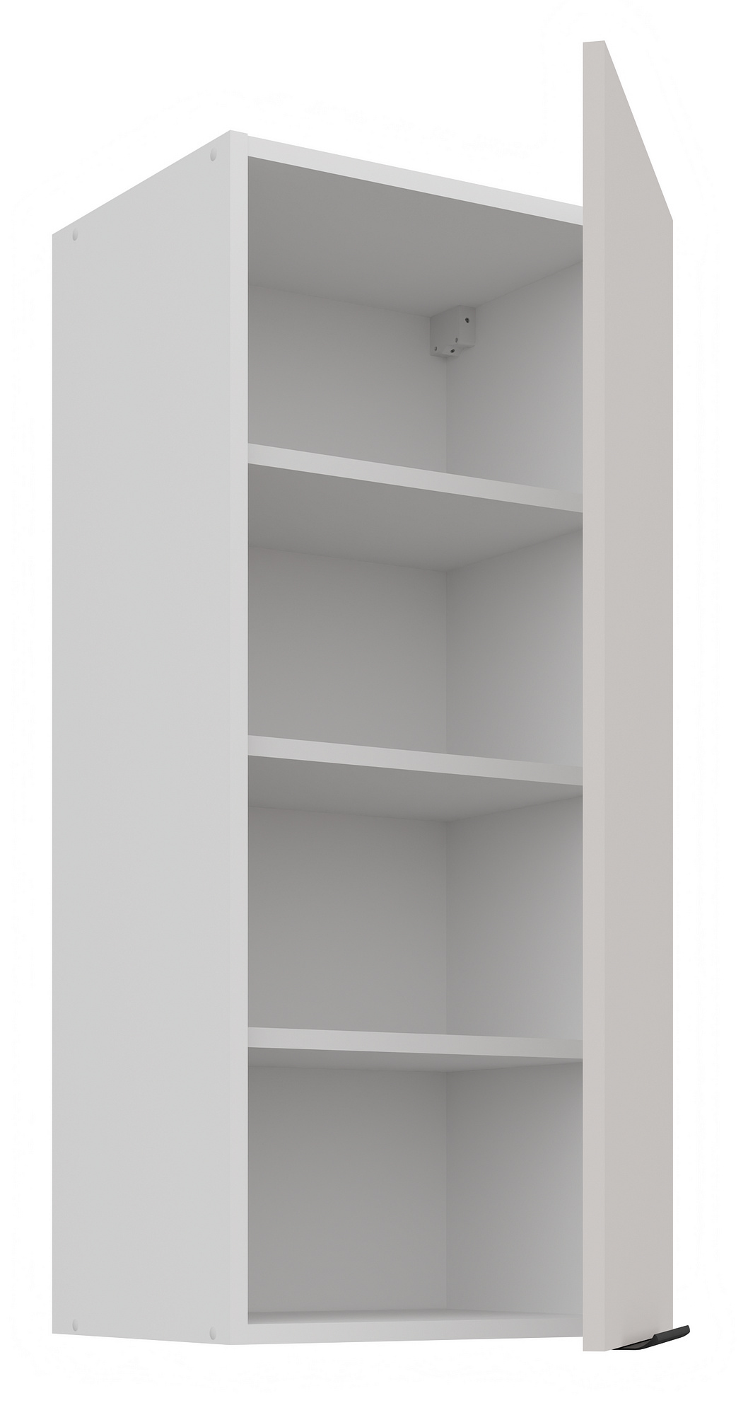 Dvířka skříňky jsou universální, což znamená, že je můžete namontovat jako pravé nebo levé, podle vašich potřeb a dispozice kuchyně. Vnitřek skříňky je v bílém provedení, což zajišťuje čistý a svěží vzhled.
