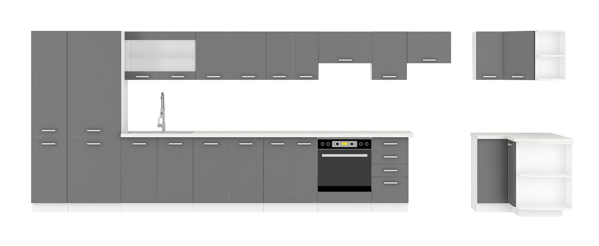 Objevte eleganci a funkčnost v jednom s kuchyní SOLA. Tato kuchyně je ideálním řešením pro moderní kuchyně, které vyžadují nejen styl, ale i praktické využití prostoru. Díky svému sofistikovanému designu v kombinaci bílé a šedého lesku se stane skvělým doplňkem každého interiéru.