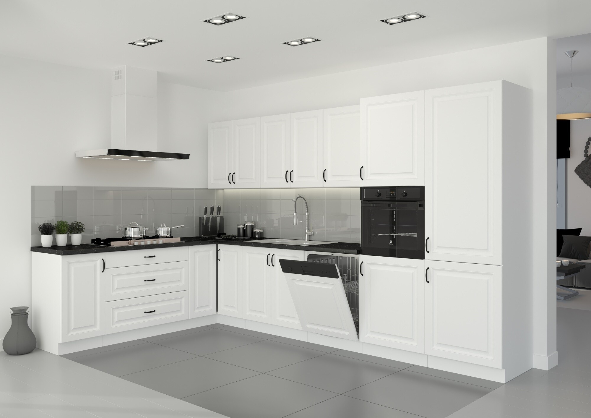 - Dvířka a čela šuplíků jsou vyrobeny z MDF 16 mm v bílé barvě. Skla o tloušťce 4 mm pokud jsou v dvířkách jsou broušené ze všech stran