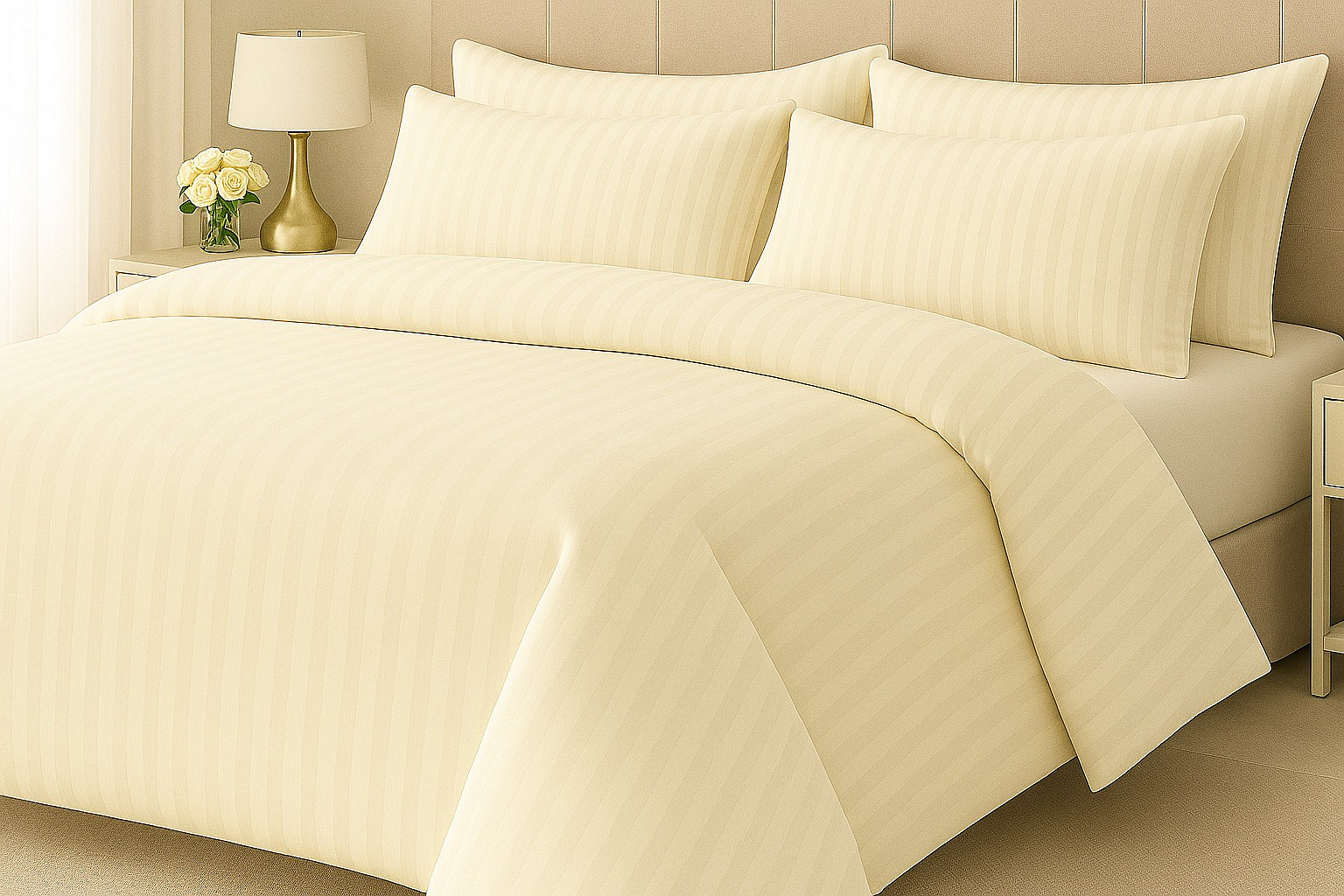 Hotelové povlečení 140x200, 70x90cm Atlas gradl smetanový - česaný 145g/m2, proužek 2cm zipový uzávěr