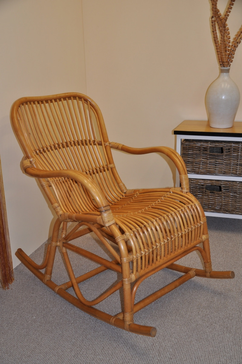 Klasické houpací křeslo v provedení z přírodního ratanu v medové barvě. | Křeslo je díky hustému výpletu velice pohodlné. Barva ratanového houpacího křesla je medová Materiál: přírodní ratan Velikost křesla je 66x100x88 cm Nosnost křesla je 130 kg