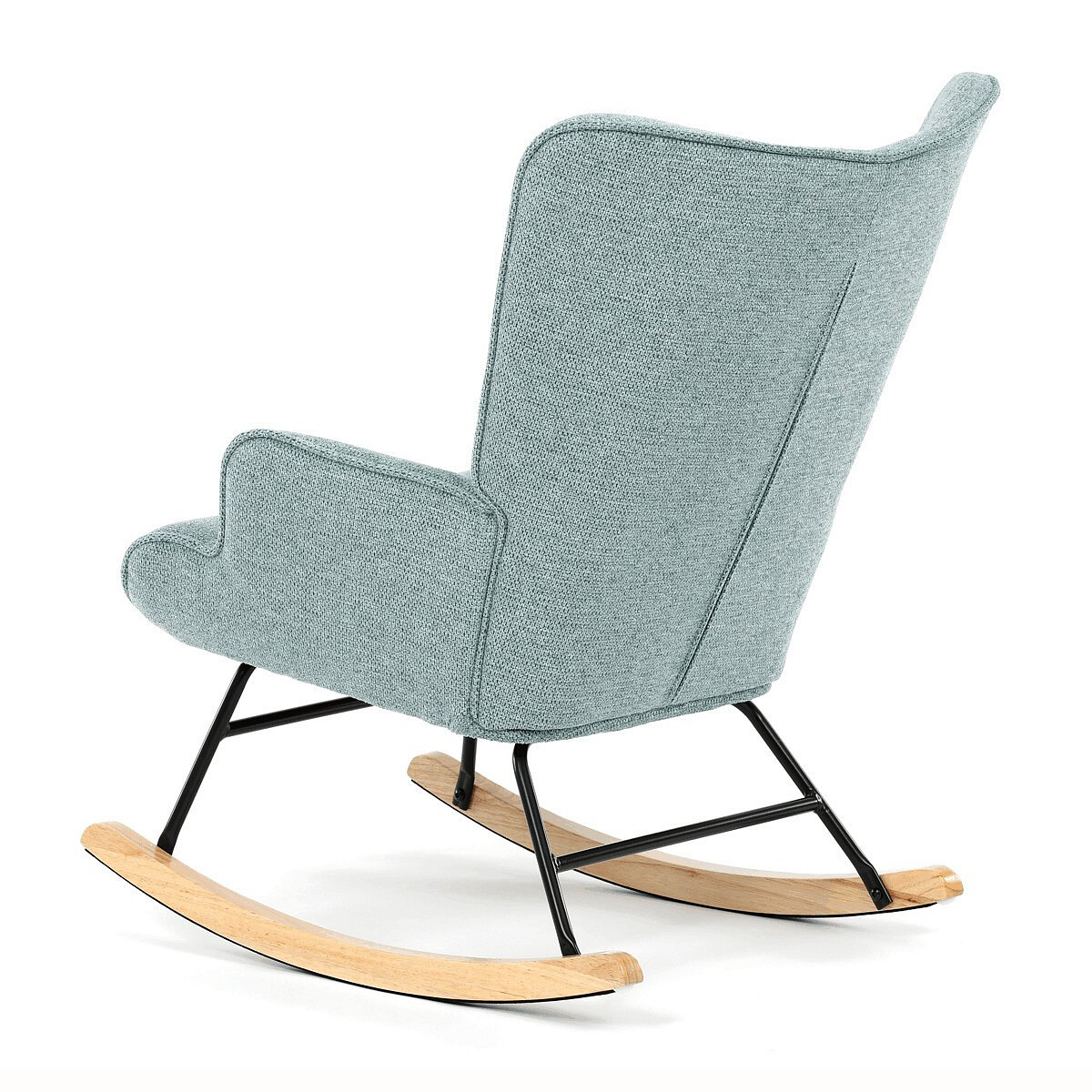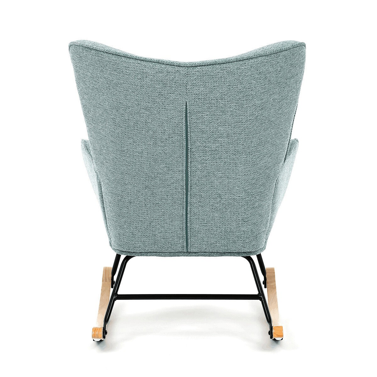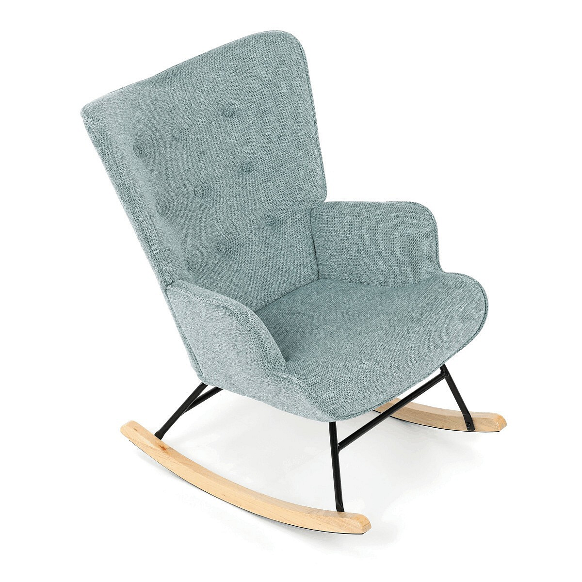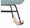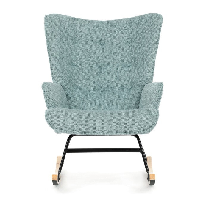 Houpací křeslo v modrém provedení je potažené prémiovou látkou, která nabízí příjemný dotek a snadnou údržbu. Sedák a opěradlo jsou ergonomicky tvarované pro pohodlné sezení, doplněné o pevné čalouněné područky. Stabilní nohy jsou vyrobeny z masivního kaučukovníku a doplněny o černý kovový rám, který zajišťuje pevnost a dlouhou životnost. Houpací mechanismus umožňuje plynulé houpání, které přispívá k relaxaci a odpočinku. Křeslo je určeno pro interiéry s důrazem na komfort a styl, jeho rozměry a nosnost odpovídají běžným standardům pro houpací křesla.