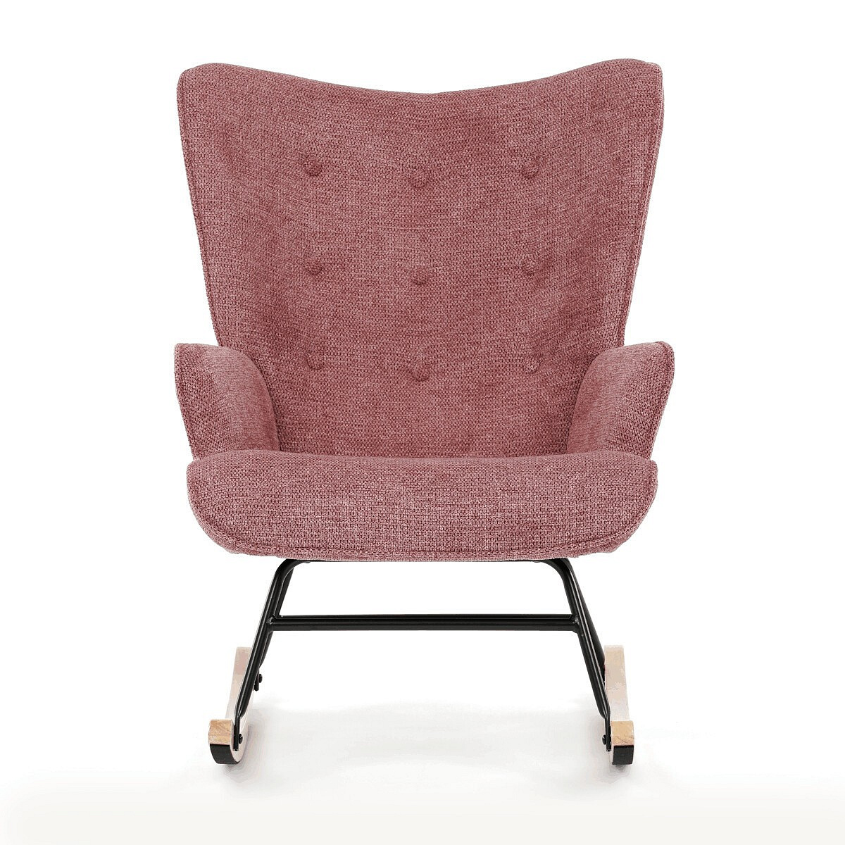 Houpací křeslo s označením AK-373 PINK2 nabízí kombinaci komfortu a stylu díky svému designu a kvalitním materiálům. Sedací část je potažena prémiovou růžovou látkou, která je příjemná na dotek a navržena pro dlouhou životnost. Područky zajišťují pohodlnou oporu při sezení, zatímco pevná podnož z černého kovu je doplněna o houpací lišty z masivního kaučukovníku, které umožňují plynulé a tiché houpání. Konstrukce křesla je stabilní a ergonomicky tvarovaná pro maximální relaxaci. Tento model není otočný ani rozkládací, jeho nosnost a rozměry jsou přizpůsobeny běžnému užívání v domácím i komerčním prostředí.