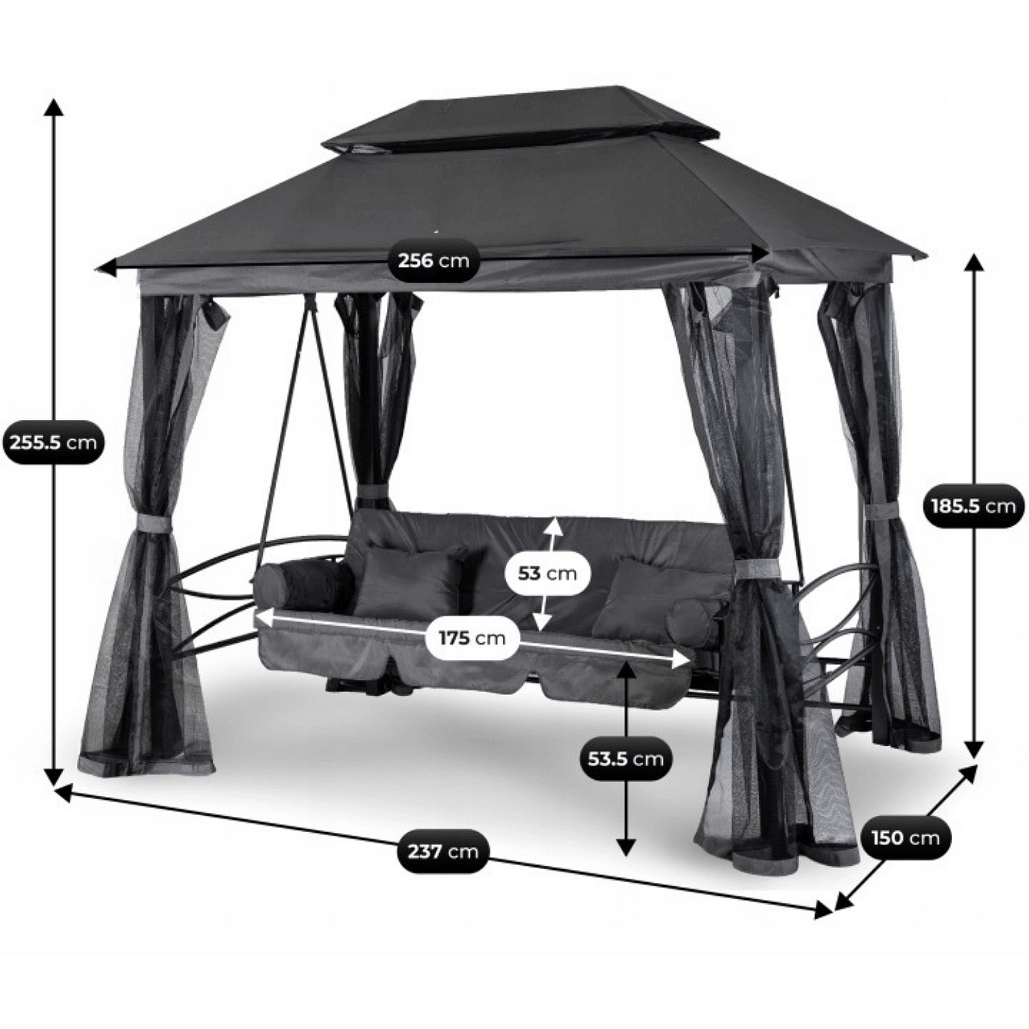 Huśtawka Ogrodowa CARMEN Szara/Czarna
