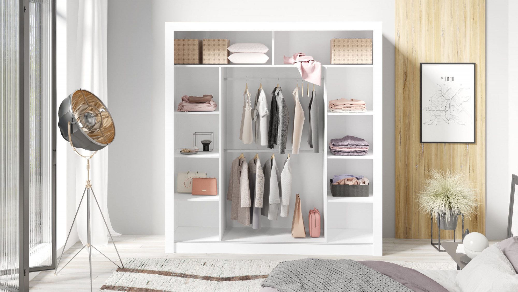 IN BOX 200 gardróbszekrény tükörrel, Fehér/Fehér márvány