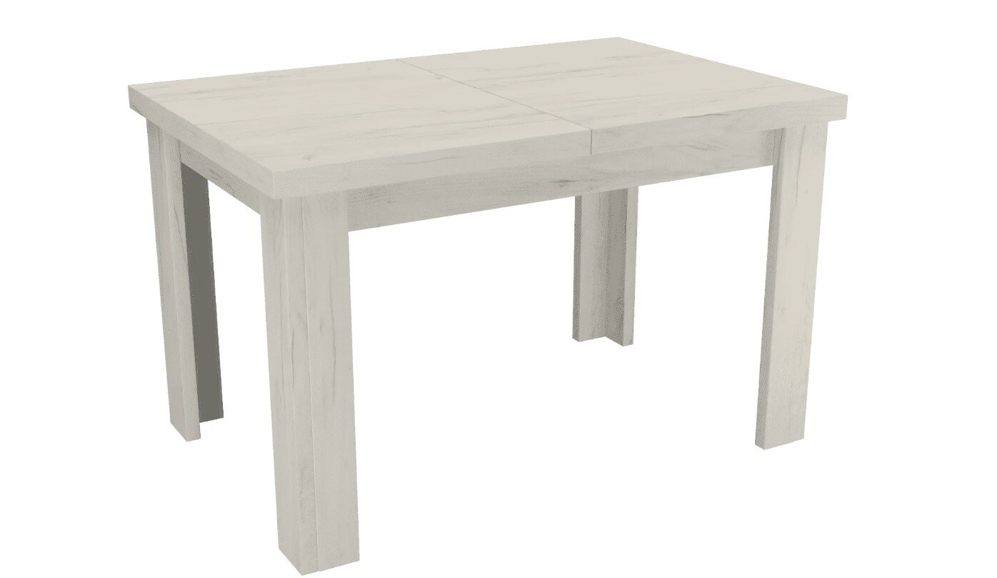 Az étkezőasztal kihúzható, összecsukva 120 x 80 cm, kinyitva 160 x 80 cm.