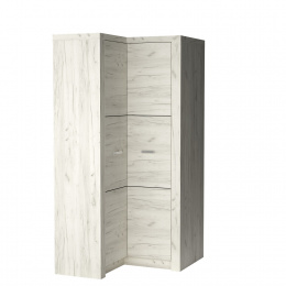 Sarok ruhásszekrény az Indianapolis kollekcióból. A bútor nagyon tágas, ami lehetővé teszi a tér könnyű szervezését és kezelését. A bal oldalon van egy polc és egy rúd, amely lehetővé teszi a rúd alatti tér kitöltését. A szekrény jobb oldalán négy polc található, amelyek ideálisak a hajtogatható ruhák elhelyezésére. A szekrény tökéletesen illeszkedik minden sarokba, és melegséget és bájt kölcsönöz a helyiségnek. Lehetőség van három polc hozzáadására a bal oldalra. A fém fogantyúk kiemelik a bútor hangsúlyait. Lehetséges a fordított változat is. Három színváltozatban kapható.