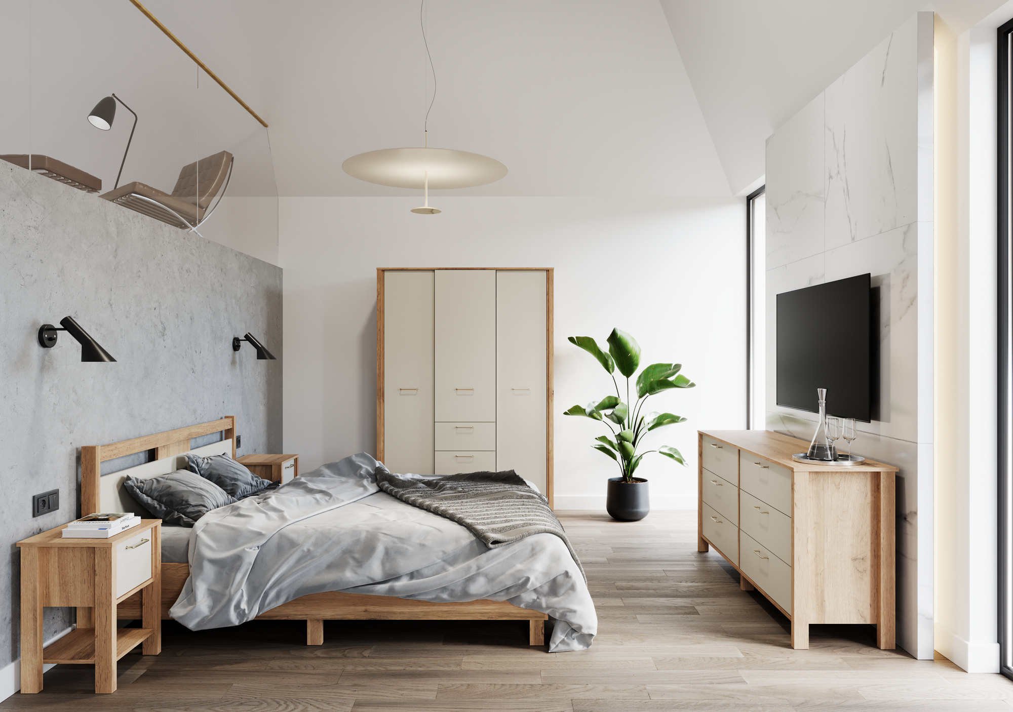 INDYGO K2D3S komód, Wotan Tölgy/Bézs