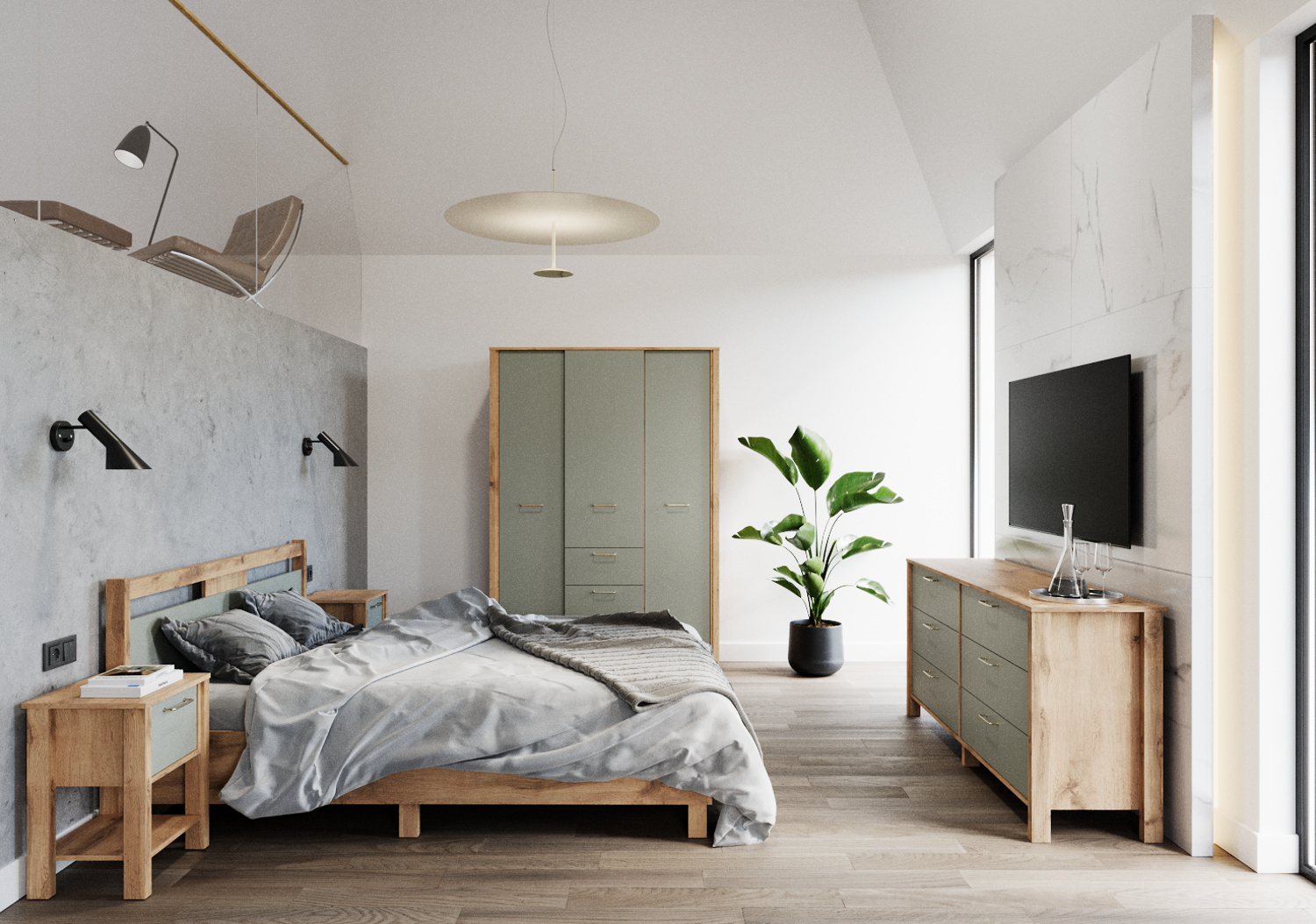 INDYGO K6S komód, Wotan tölgy/Zöld