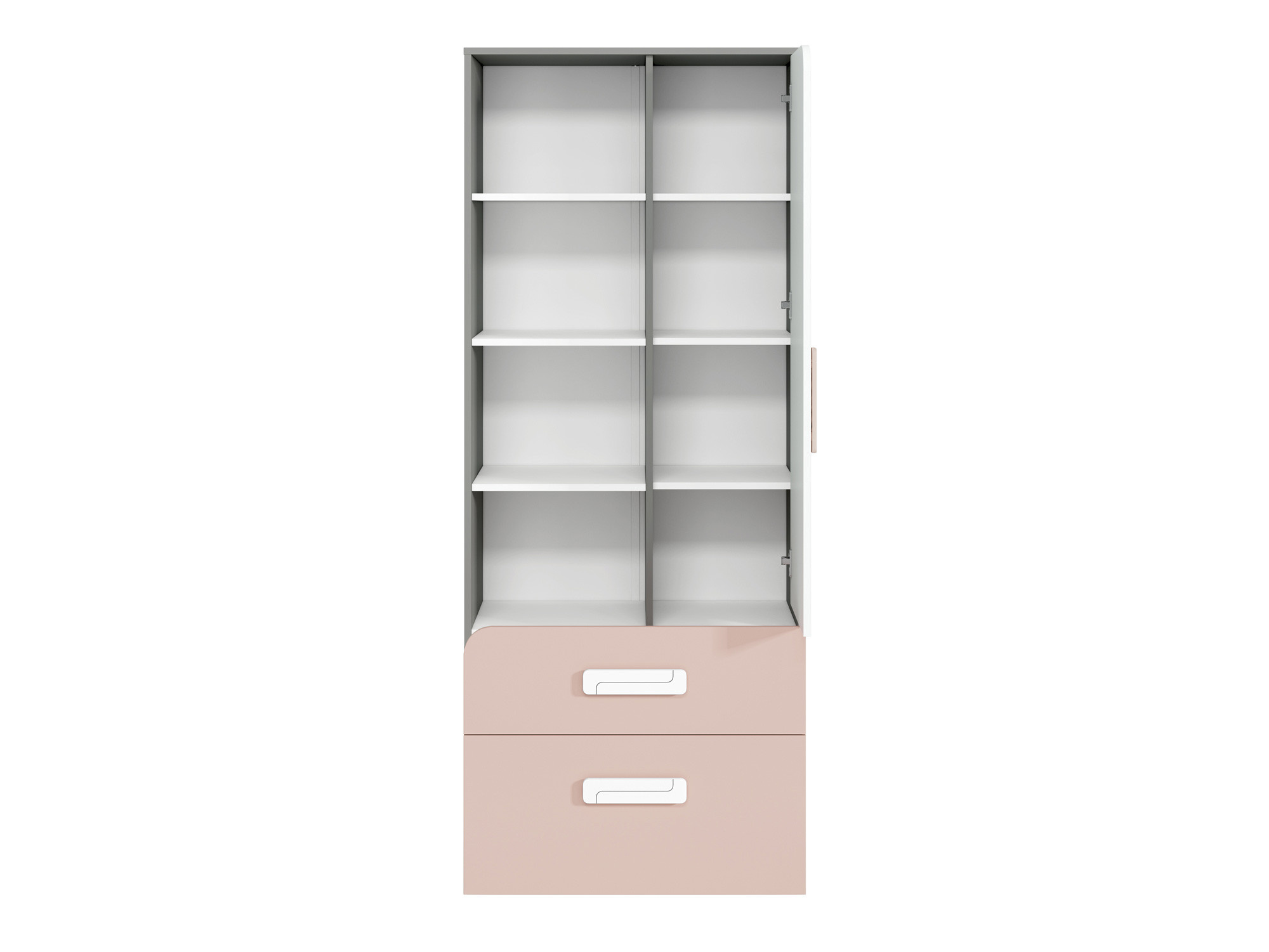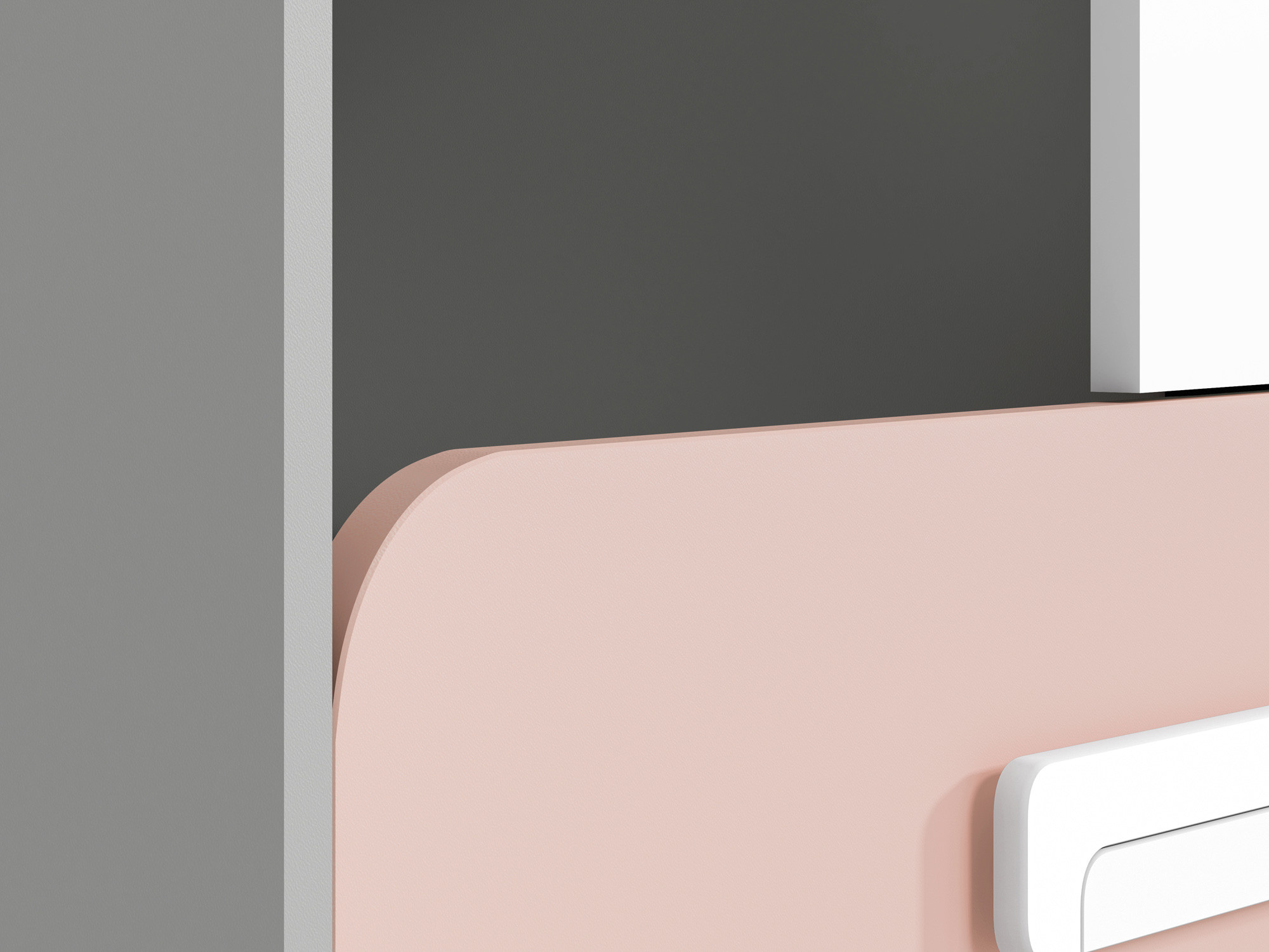 Regał z kolekcji IQ model 03-01 w kolorze pudrowym został zaprojektowany z myślą nie tylko o najmłodszych użytkownikach, ale także o tych osobach, które uwielbiają barwne akcenty aranżacyjne. Na otwartych półkach wyeksponujesz ulubione przedmioty czy książki. Natomiast zamknięte półki będą idealnym rozwiązaniem do przechowywania ubrań.