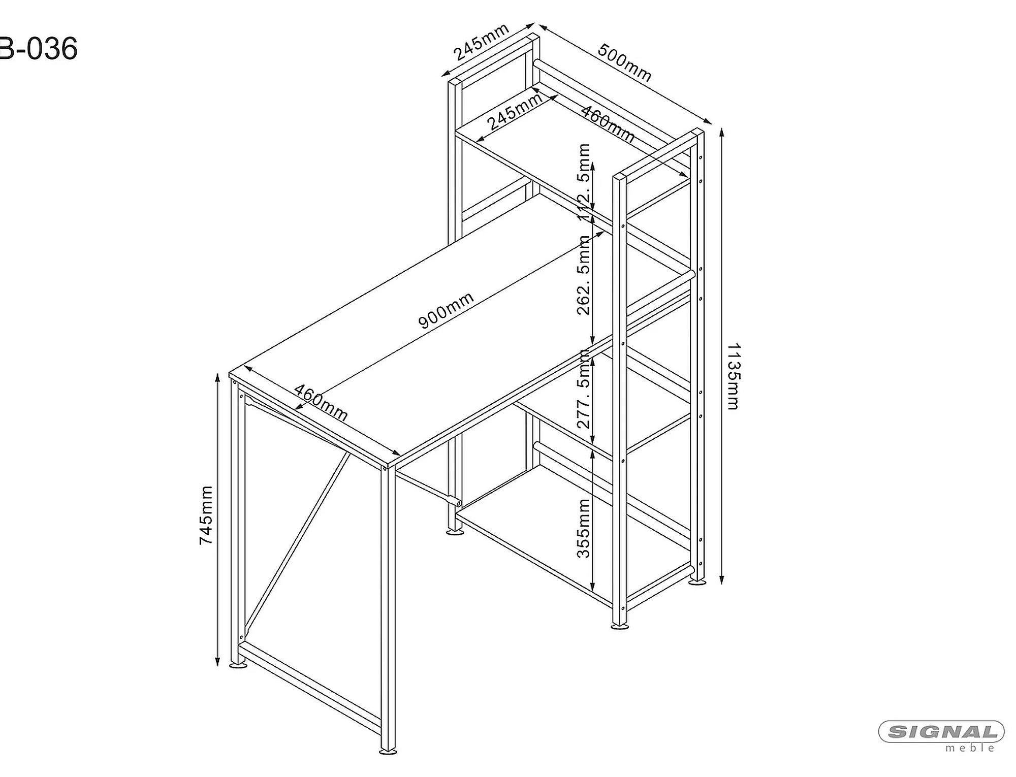 Íróasztal B-036, Tölgy/fekete