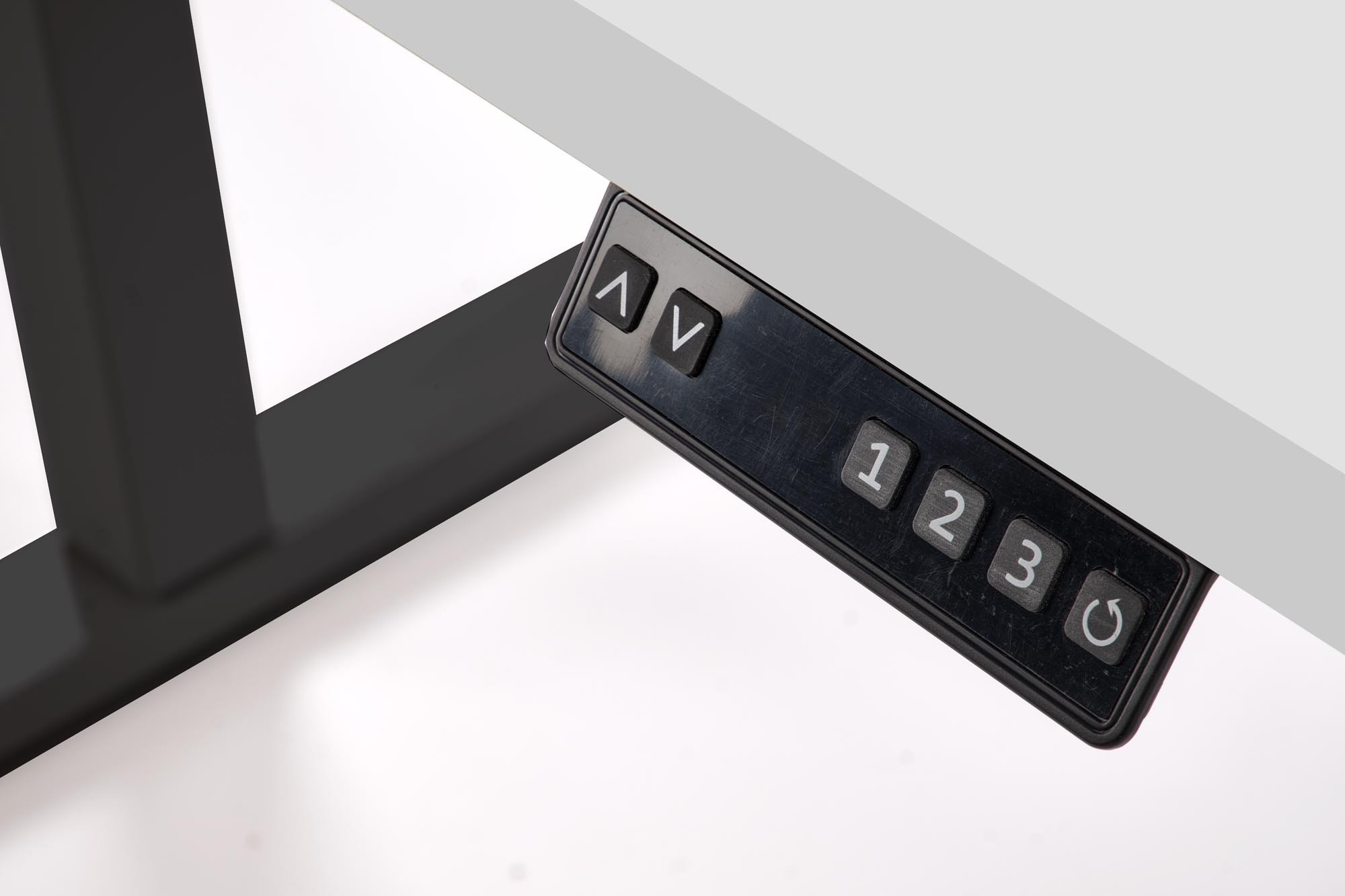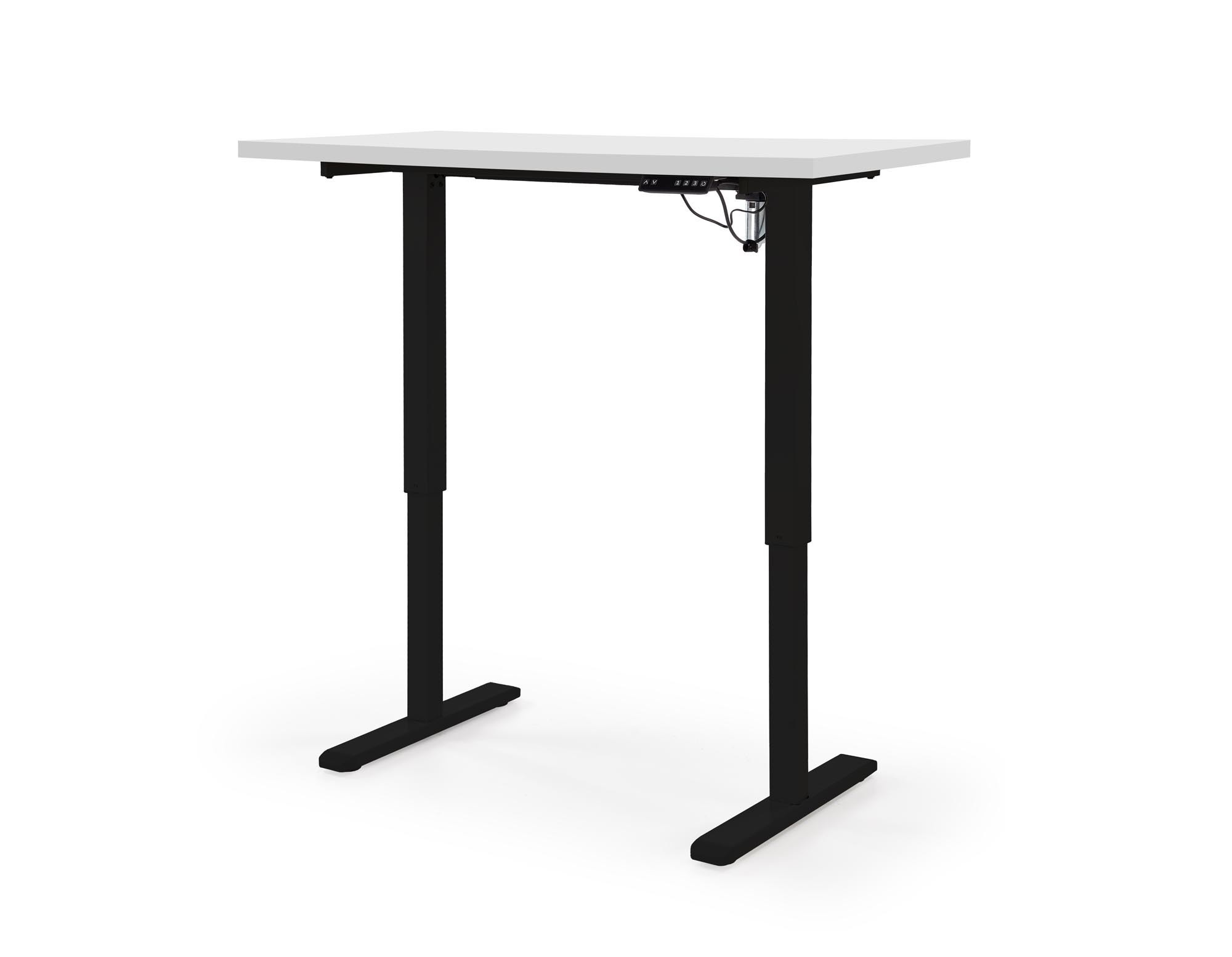 íróasztal magasságállítási funkcióval, anyag: laminált bútorlap / porszórt acél, színek: lap - fehér, szerkezet - fekete