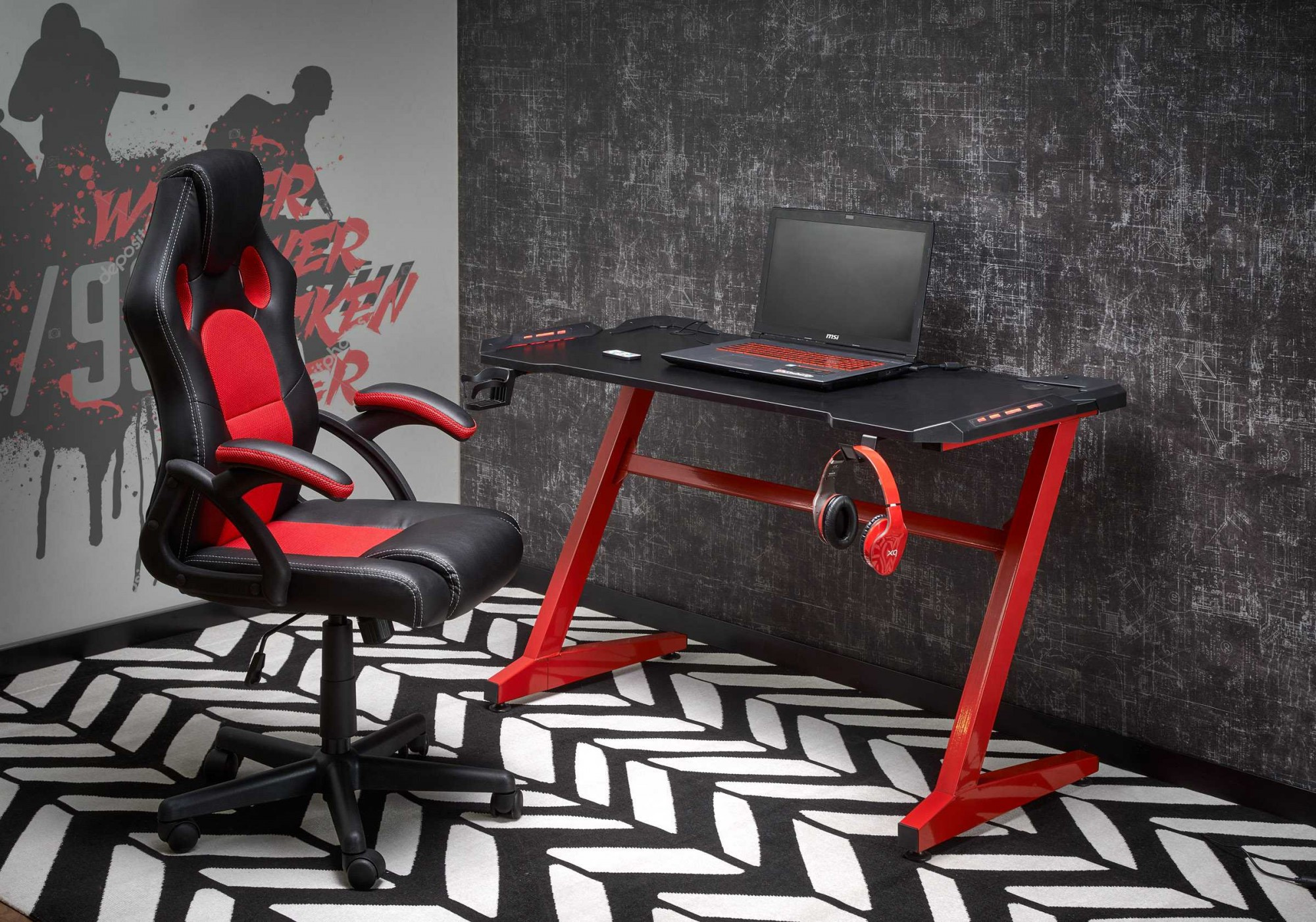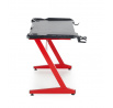 méretek: 122/60/74 cm, LED világítás, pohártartó, tartozéktartó, Anyag: MDF furnér / porszórt acél, Szín: fekete - piros