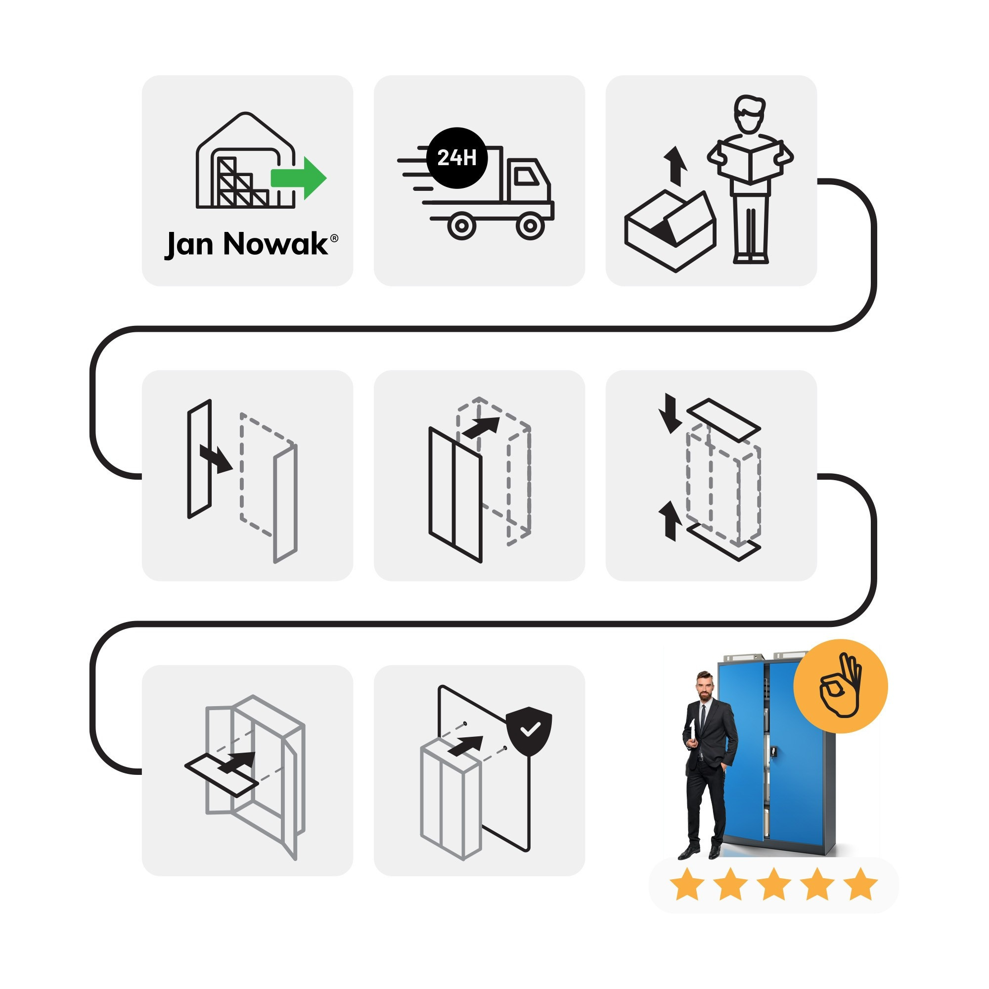A JAN II szekrény maximális biztonság és megbízhatóság figyelembevételével lett tervezve. Robusztus konstrukció, kiváló minőségű anyagok és biztonságos zárás garantálják, hogy értékei biztonságban lesznek.
