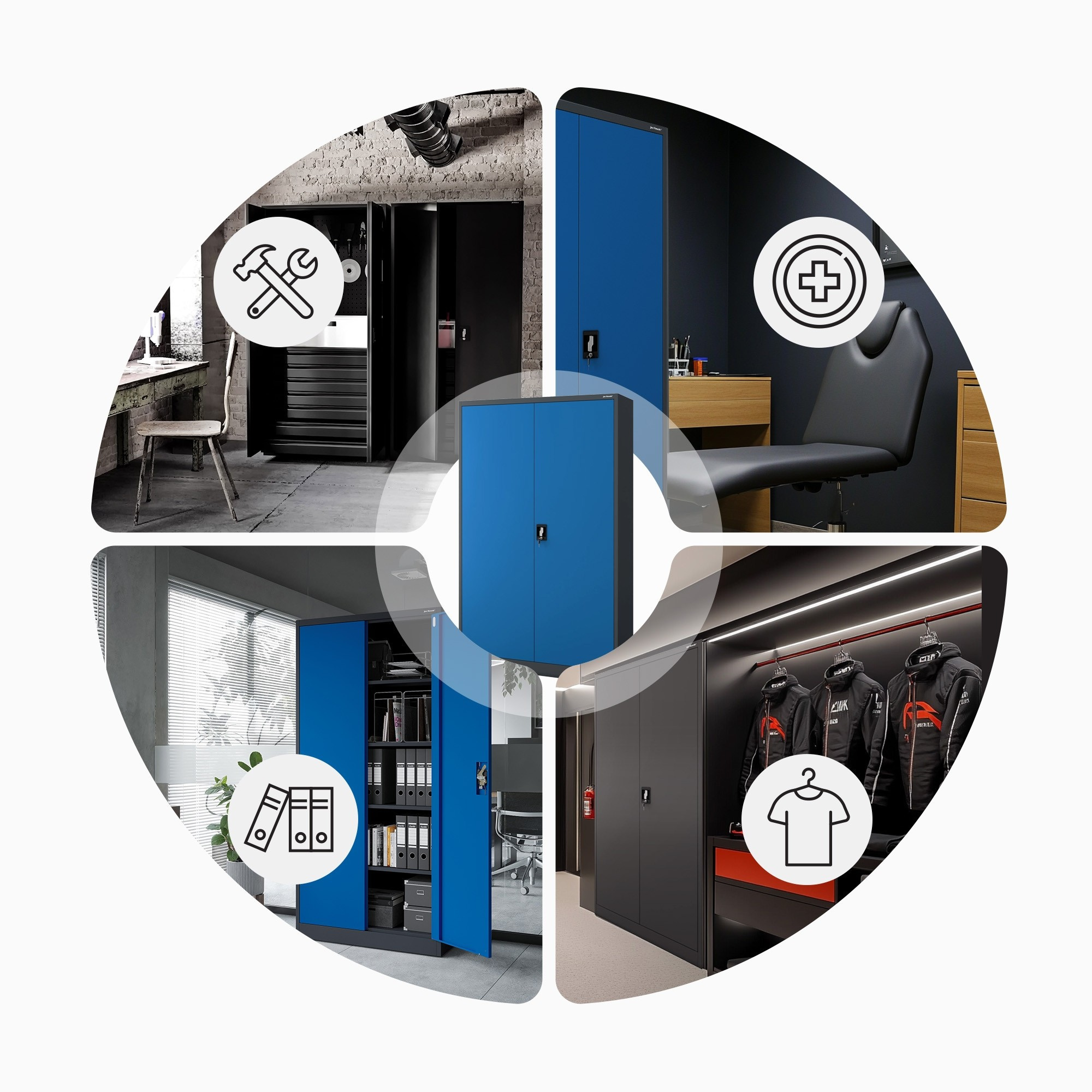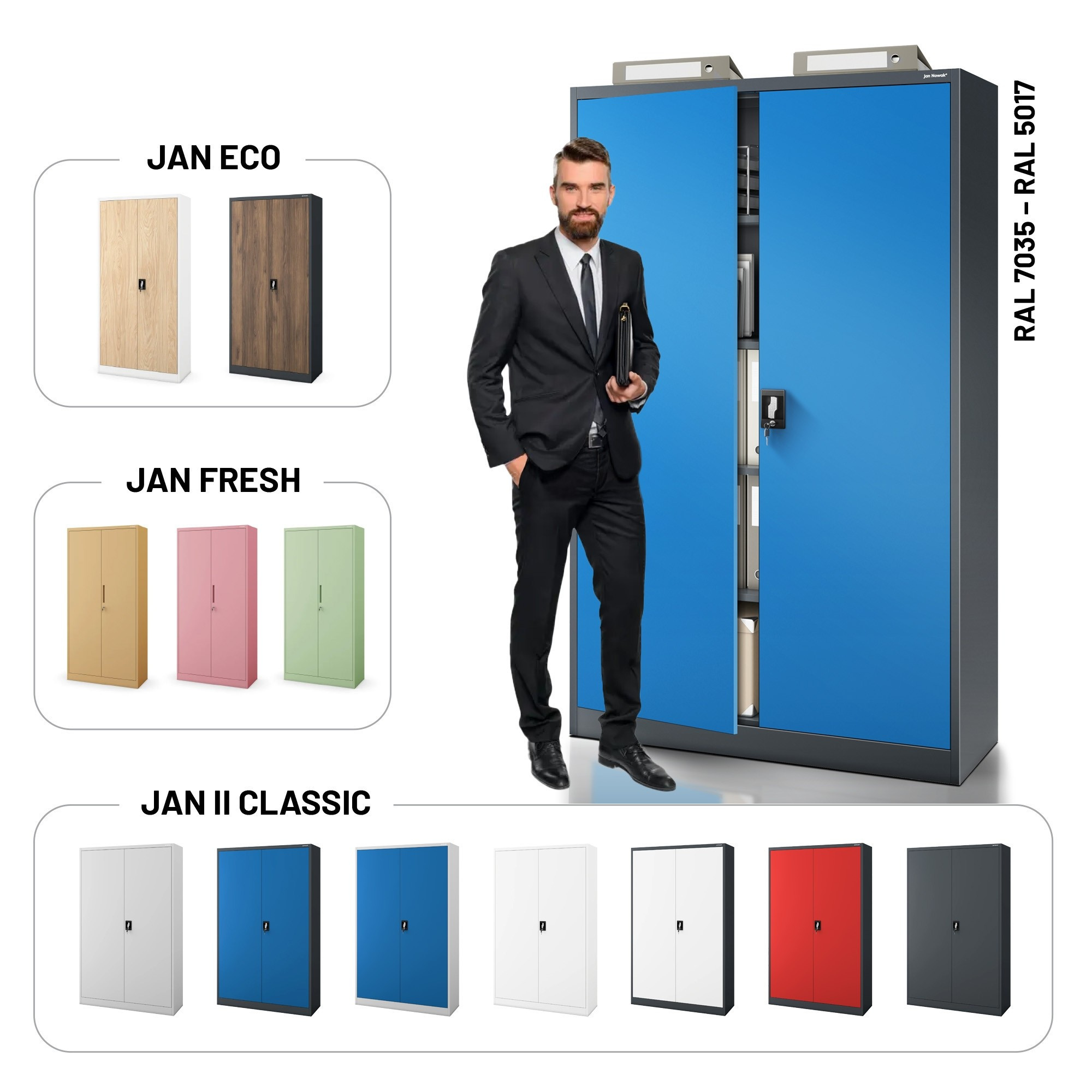 A JAN II szekrény úgy lett tervezve, hogy széles körű követelményeknek feleljen meg. Akár irodában, egészségügyi intézményben, műhelyben vagy otthon van rá szüksége, mindig tökéletesen alkalmazkodik az igényeihez. Robusztus felépítése és átgondolt kialakítása garantálja a hosszú élettartamot és a problémamentes használatot.