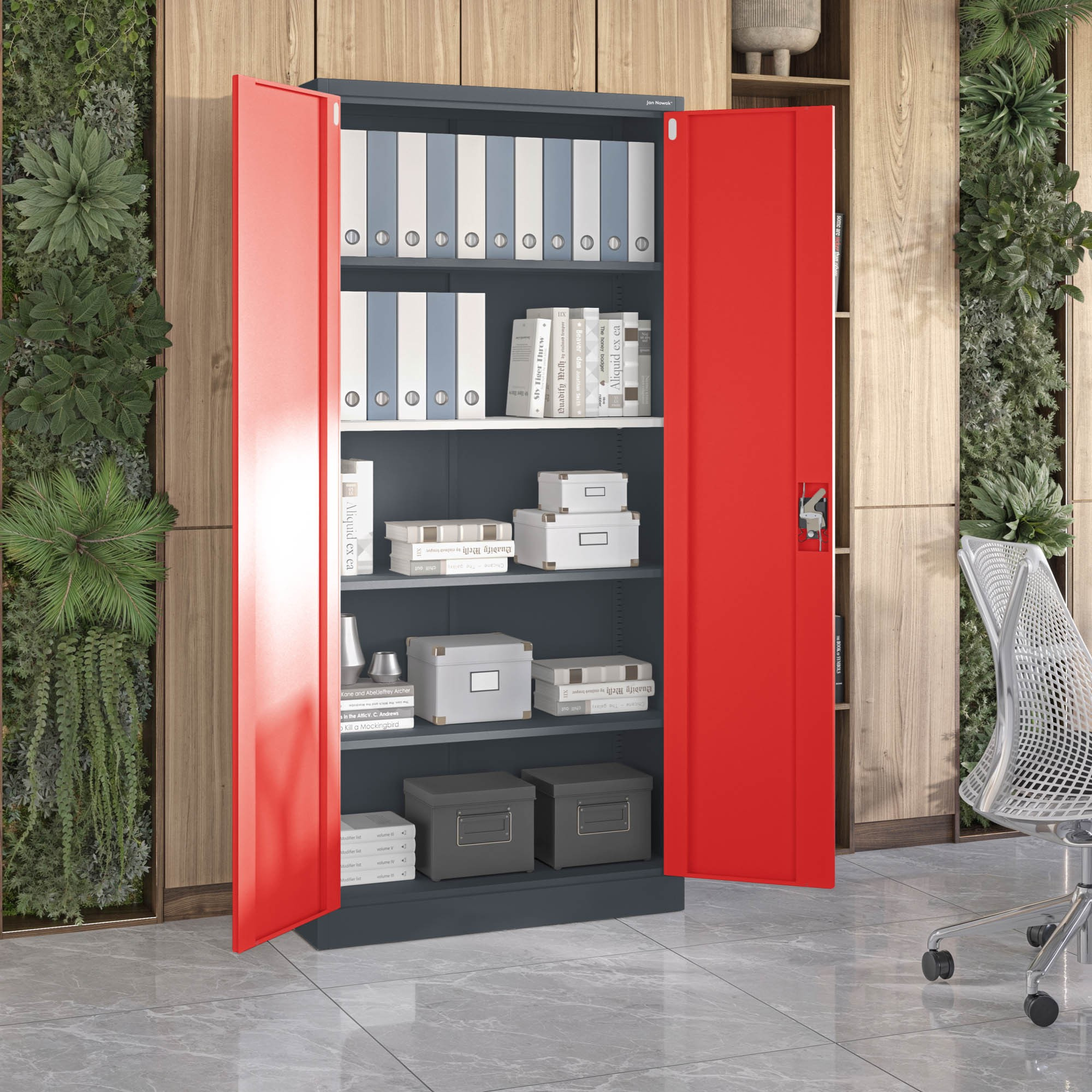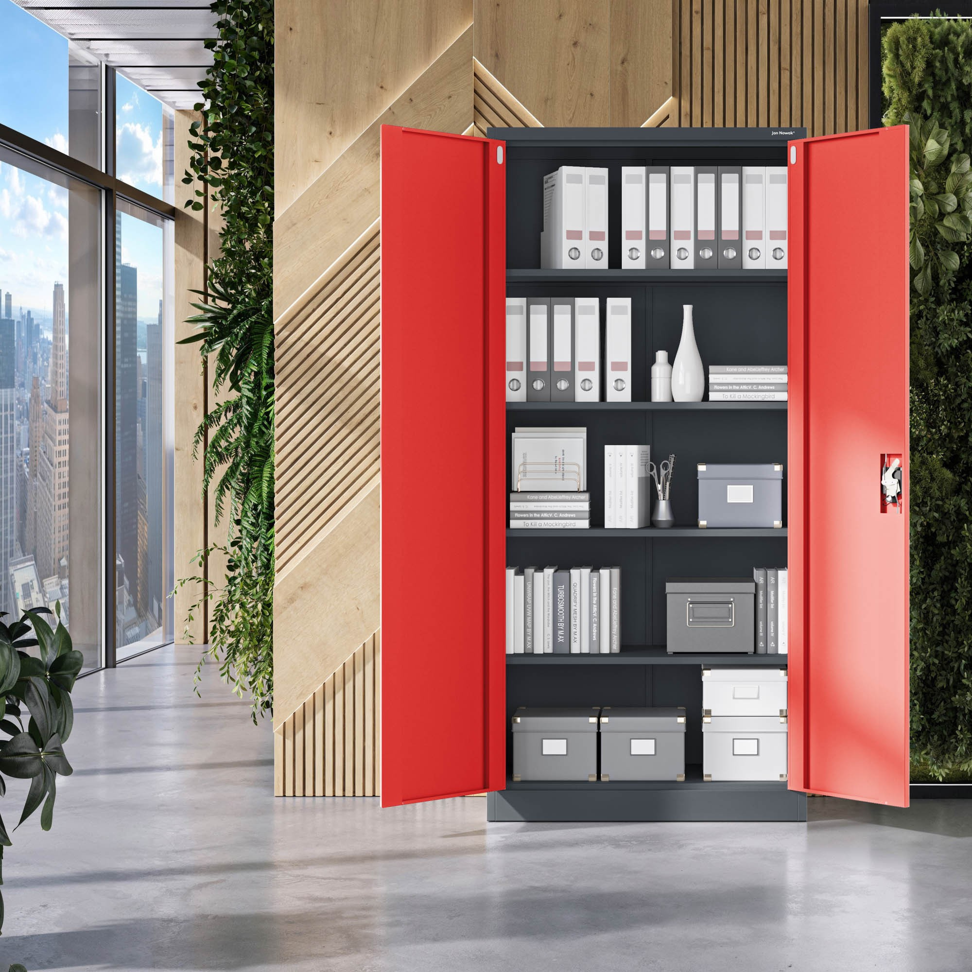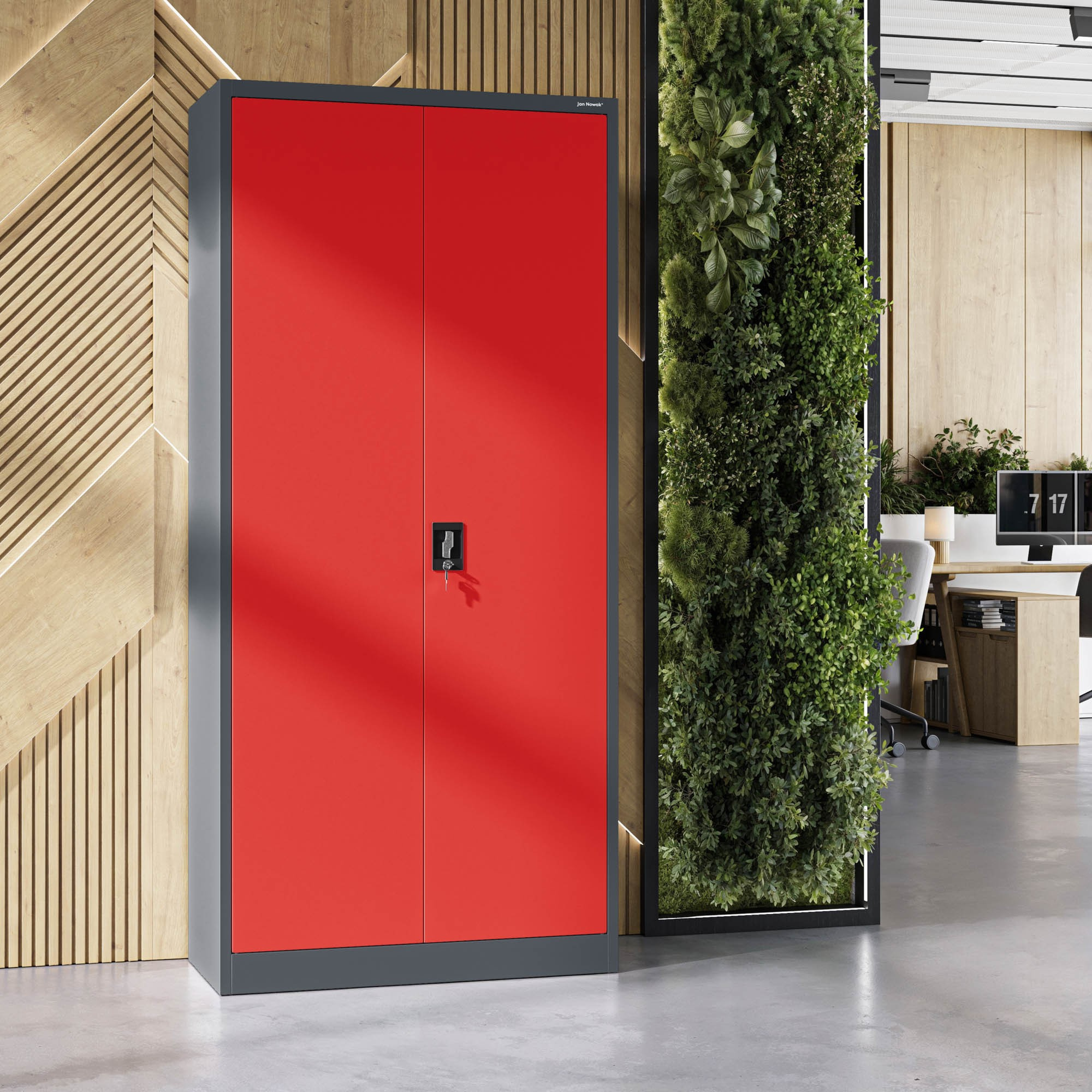 Irodai fém iratszekrény antracit-vörös: JAN H, 900 x 1950 x 400 mm