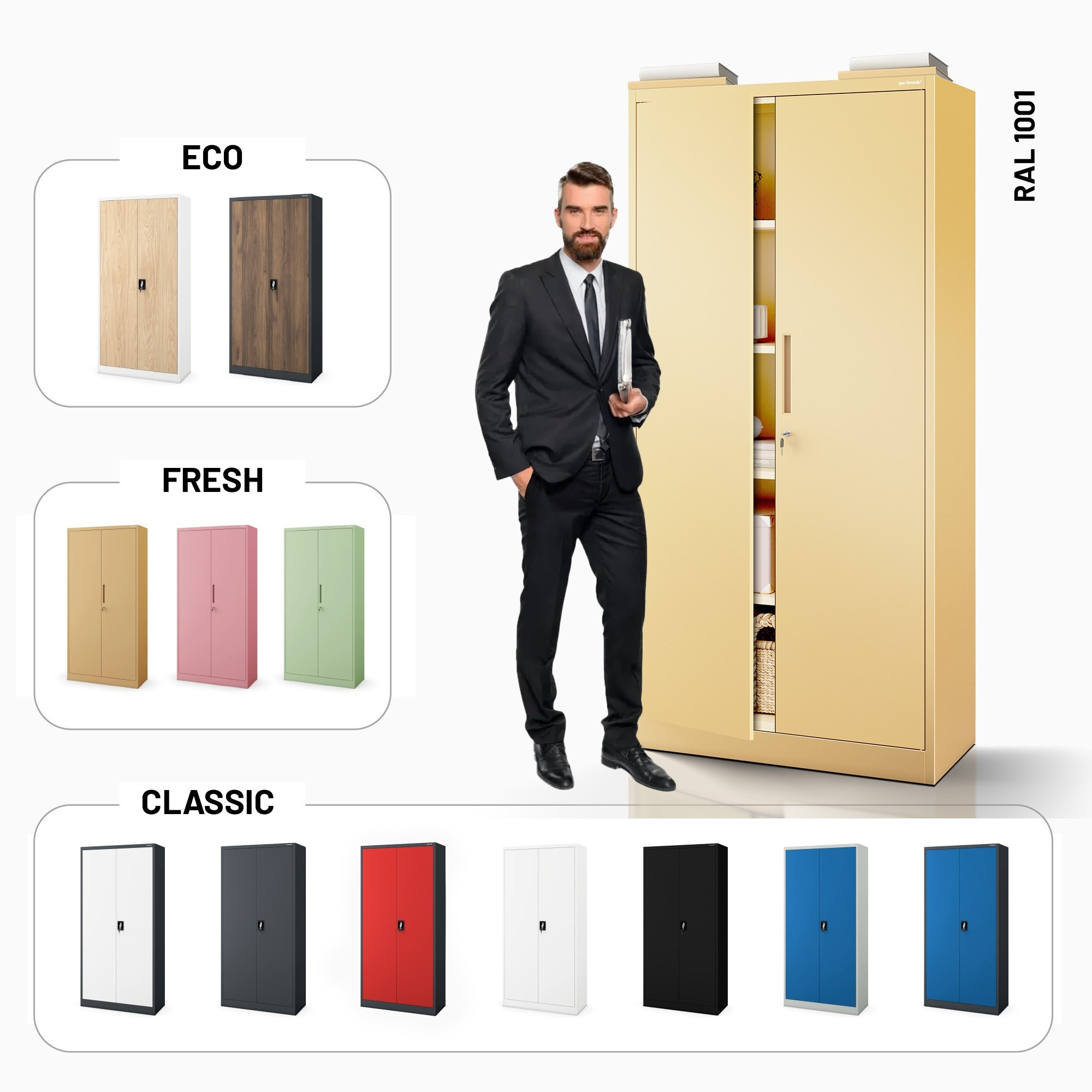 Irodai fém iratszekrény bézs: Fresh Style JAN H, 900 x 1950 x 400 mm