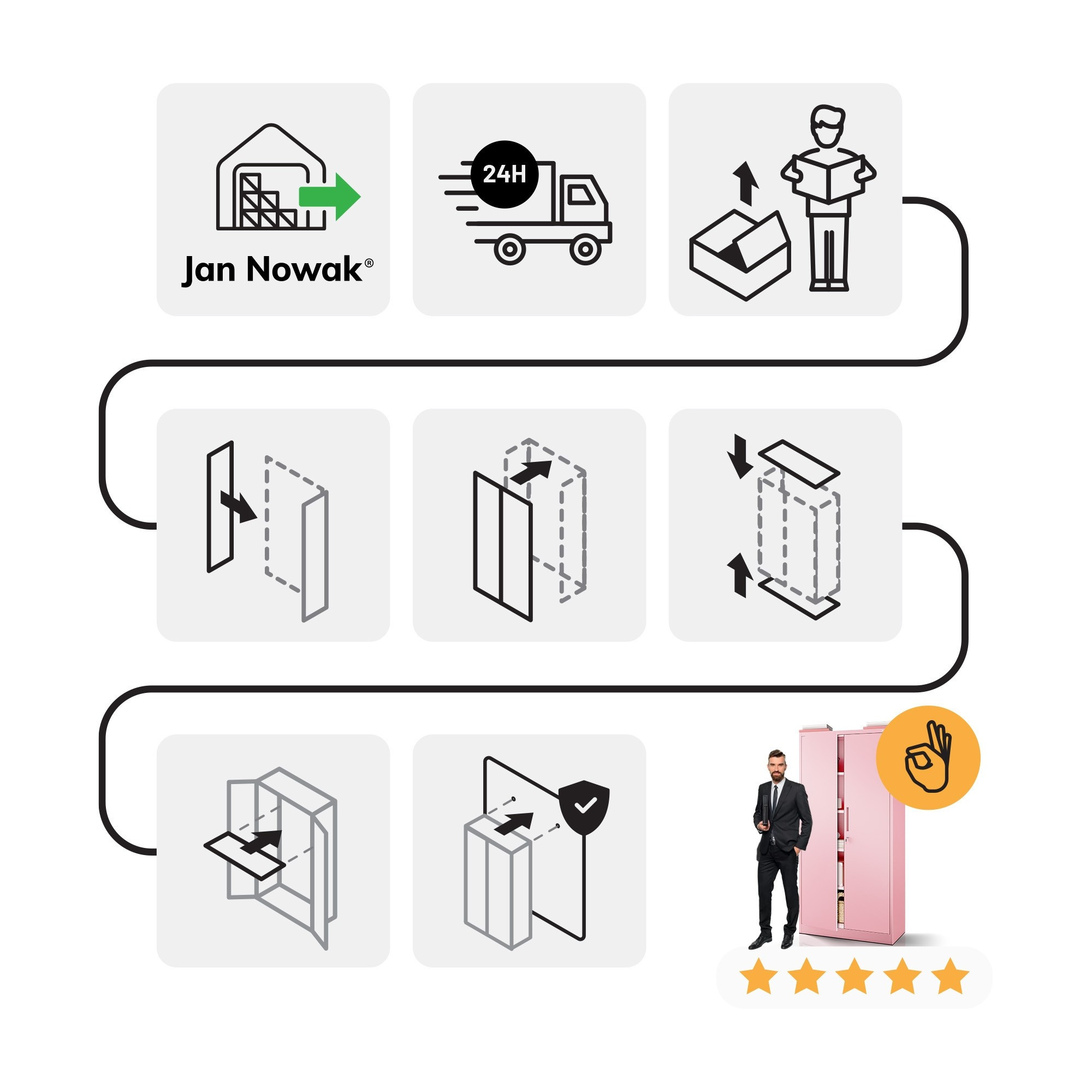 A porszórás biztosítja a korrózió- és karcállóságot, így a szekrény hosszú évekig megőrzi szép megjelenését.Kinek szól a JAN H szekrény?