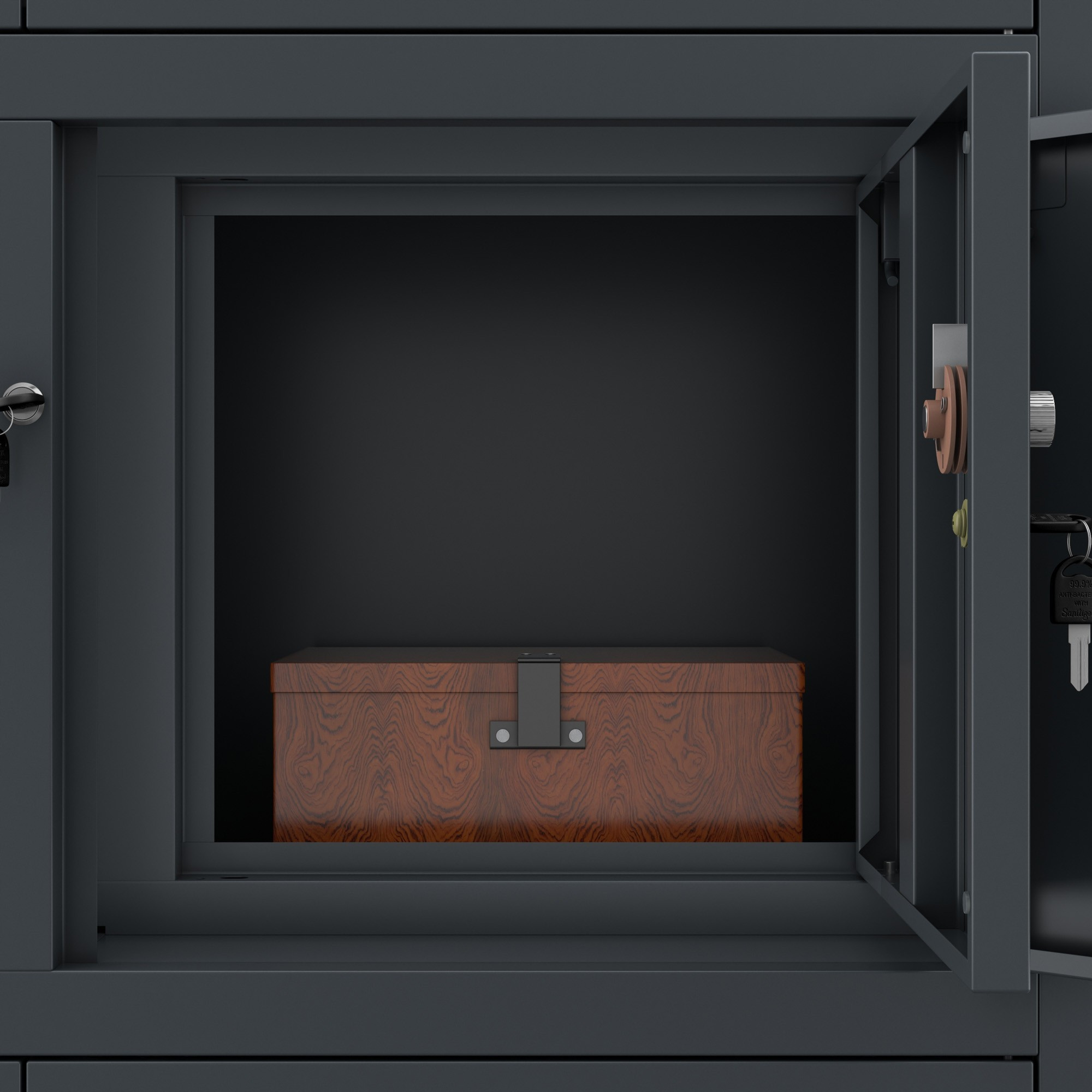Az egyik fő ok, amiért az ügyfelek a FILIP II szekrényt választják, a magas szintű biztonság. A szekrény fel van szerelve egy rejtett kódszéffel, amely további védelmet nyújt értéktárgyai számára. Minden szekrénymodul külön zárral zárható, ami növeli a tárolt tárgyak biztonságát.