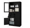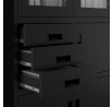 A FILIP szekrény fekete színe időtlen és elegáns. A szekrény minden belső térbe illenek, és modern, professzionális megjelenést kölcsönöznek neki. Üvegezett vitrin könnyedséget kölcsönöz a szekrénynek, és lehetővé teszi kedvenc tárgyainak kiállítását.