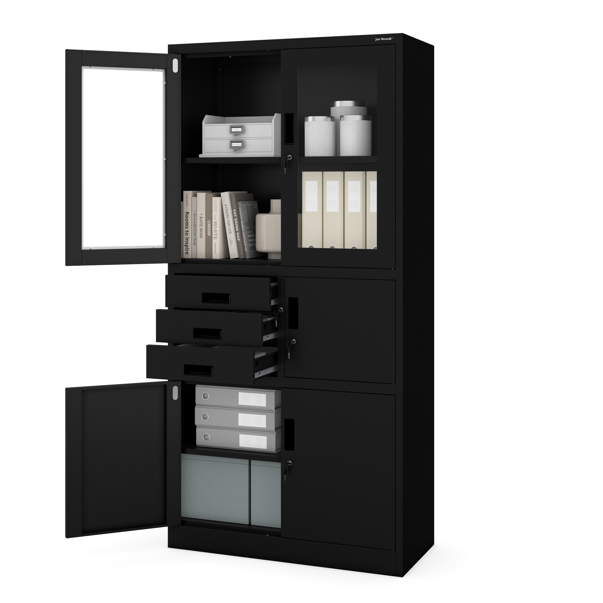 A FILIP szekrény rendkívül sokoldalúak, és számos területen alkalmazhatók. Az irodában iratosszekrényként használhatja, a rendelőben orvosi szekrényként, a műhelyben műhelyszekrényként, otthon pedig univerzális tárolóhelyként. Elegáns kialakításának köszönhetően a FILIP szekrény minden környezetbe illeszkednek.