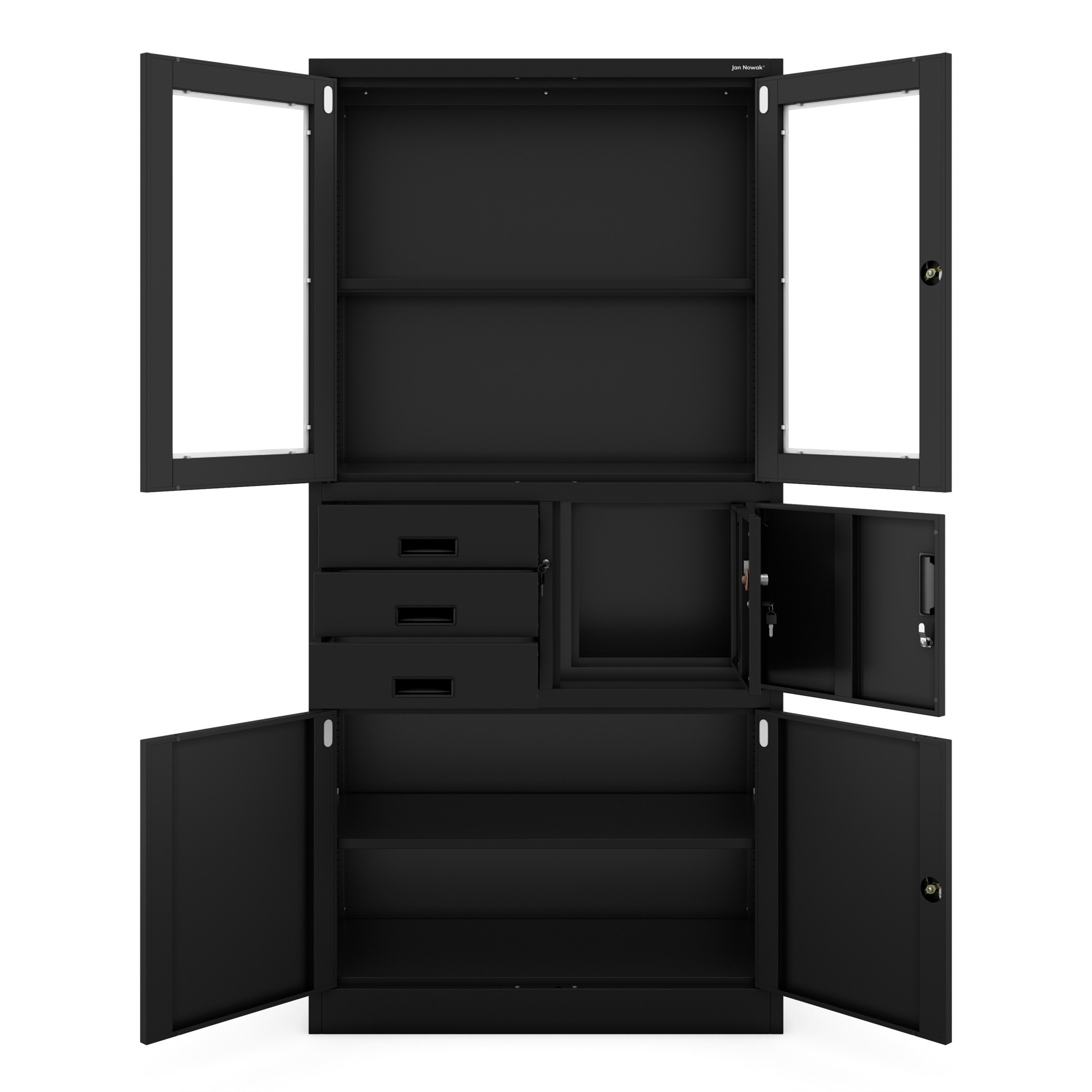 A FILIP szekrény trezorral befektetés a biztonságba, rendbe és eleganciába. Ezzel a szekrénnyel nemcsak praktikus tárolóhelyet kap, hanem egy elegáns kiegészítőt is, amely irodája, műhelye, rendelője vagy otthona díszévé válik. Már nem kell aggódnia értékei és dokumentumai biztonsága miatt – a FILIP széf biztosítja, hogy biztonságban vannak.