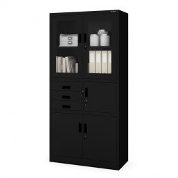 Irodai fém szekrény iratok és dokumentumok számára széffel FILIP, 900 x 1850 x 400 mm, fekete