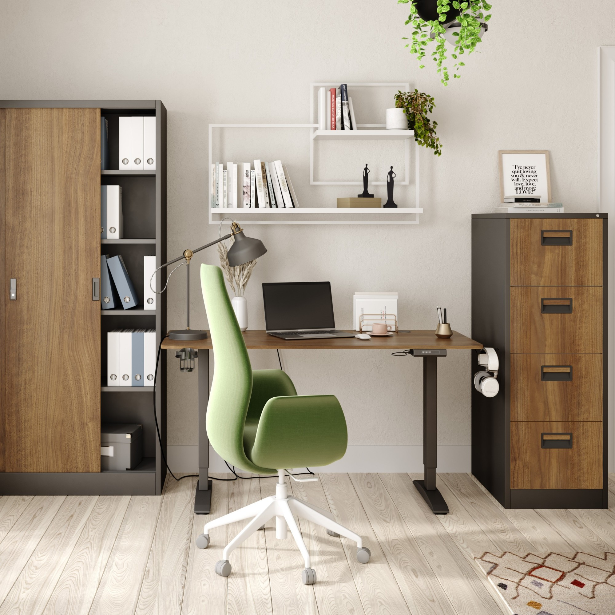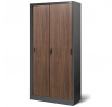 Az Eco Design sorozat új dimenziót hoz a fém bútorok világába eleganciával és stílussal. A KUBA szekrény a masszív acélszerkezetet diófa dekorációval kombinálják a tolóajtókon. Ez a dizájnelem meleg és barátságos megjelenést kölcsönöz a szekrénynek, amely remekül illik a modern és a hagyományos belső terekhez is. Az antracit szín (RAL 7016) a szekrény korpusán kifinomult és időtlen jelleget kölcsönöz a teljes dizájnnak.
