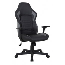 Forgószék, kiváló minőségű ökobőrrel kárpitozva. A háttámla és az ülés vödör stílusban profilozott; a középső részen perforált. A kényelmet a TILT típusú mechanizmus biztosítja, amely a szabályozható erőnek köszönhetően lehetővé teszi a szabad hintázást és a közvetlen pozícióban való rögzítést. A gázdugattyú felelős az ülésmagasság szabályozásáért. Kerekek és alap fekete színű, PVC-ből készült Méretek: - teljes magasság: 108-118 cm - ülésmagasság: 43-53 cm - karfa magasság: 60-70 cm - háttámla magasság: 68 cm - teljes szélesség: 65 cm - ülés szélesség: 50 cm - ülés mélység: 47 cm Szín: fekete szürke betétekkel
