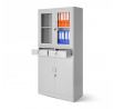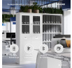 - Üvegezett vitrin: Az elegáns üvegezett vitrin a szekrény középső részén ideális a gyakran használt iratrendezők és dokumentumok tárolására, amelyeket mindig szem előtt szeretne tartani.