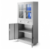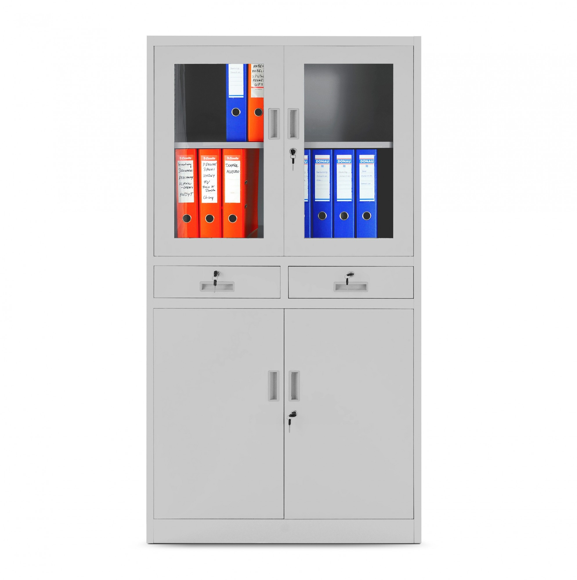 Irodai üvegezett fém iratszekrény fiókokkal EDMUND, 900 x 1850 x 400 mm, szürke