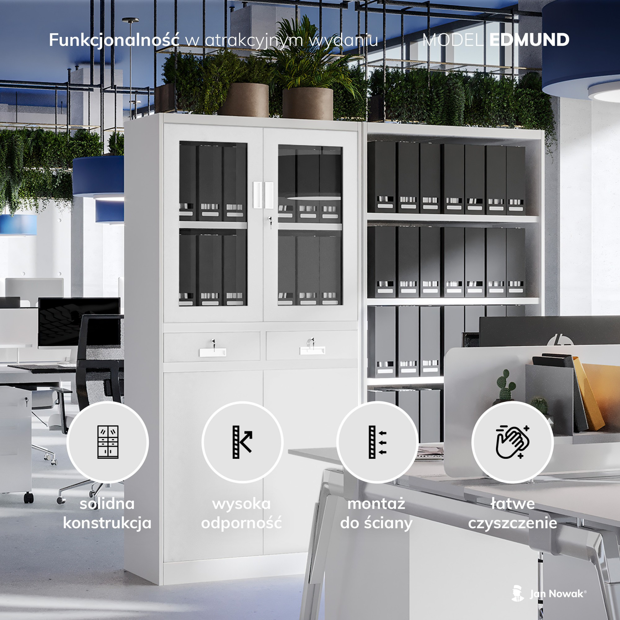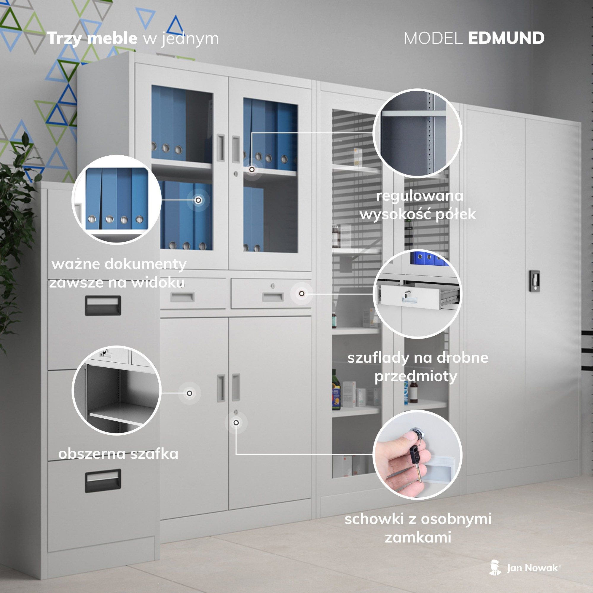 Ne várjon, és rendelje meg az EDMUND szekrényt még ma. Szerezzen megbízható, stílusos és biztonságos megoldást az irodai dokumentumok tárolására. Az EDMUND szekrény segítenek rendet tartani, növelni a munka hatékonyságát és biztosítani értékes információinak védelmét.