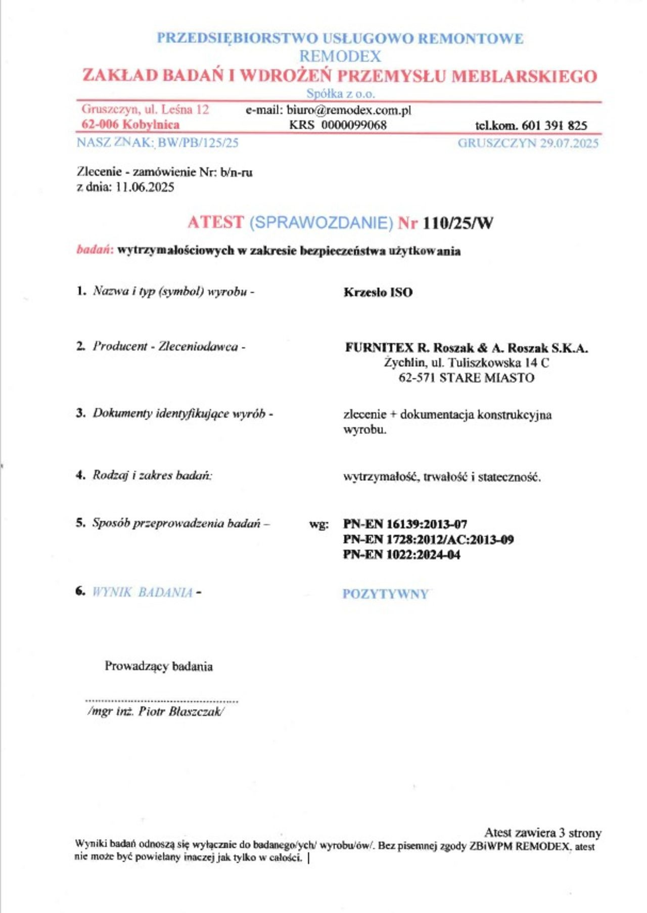 *A szék rendelkezik BHP TANÚSÍTVÁNNYAL Méretek: - ülés szélessége 46 cm - ülés szélessége kerettel 54 cm - mélység 39 cm - ülésmagasság 45 cm - teljes magasság 76 cm Anyag: - membrán szövet + háló + porszórt fém Szín: - fekete