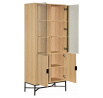 A Jaipur vitrinának vad tölgy dekorációjával kiállíthatja kedvenc tárgyait, míg a többi a lamellás előlapú 2 ajtó mögötti polcokon talál helyet. A felső részen található polcok átlátszó üvegajtókkal vannak lefedve, és állíthatóak, ami lehetővé teszi a kiállítás személyes preferenciákhoz való igazítását. Vitrin vad tölgy dekorral 6 állítható polccal, amelyek lehetővé teszik a személyre szabást, 2 átlátszó edzett üvegajtóval, 2 lamellás előlapú ajtóval és fekete acél fogantyúkkal van felszerelve. Lábak fekete porfestett acélból készültek. Anyag: MDF lap, tölgyhatású furnér, edzett üveg. Fém alap, porfestett.