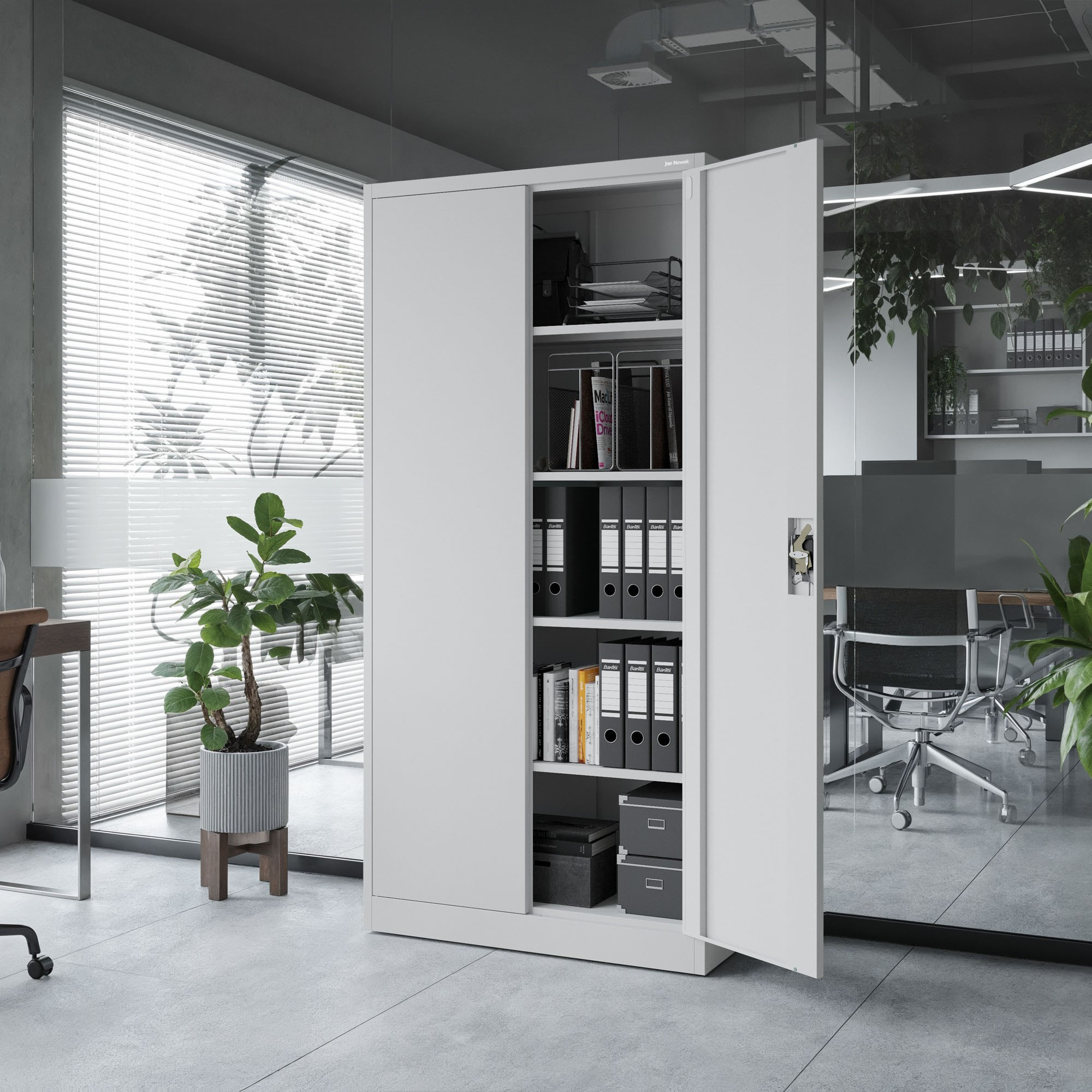 A JAN szürke színű irodai szekrény ideális választás mindazok számára, akik tartós, funkcionális és biztonságos tárolási megoldást keresnek.