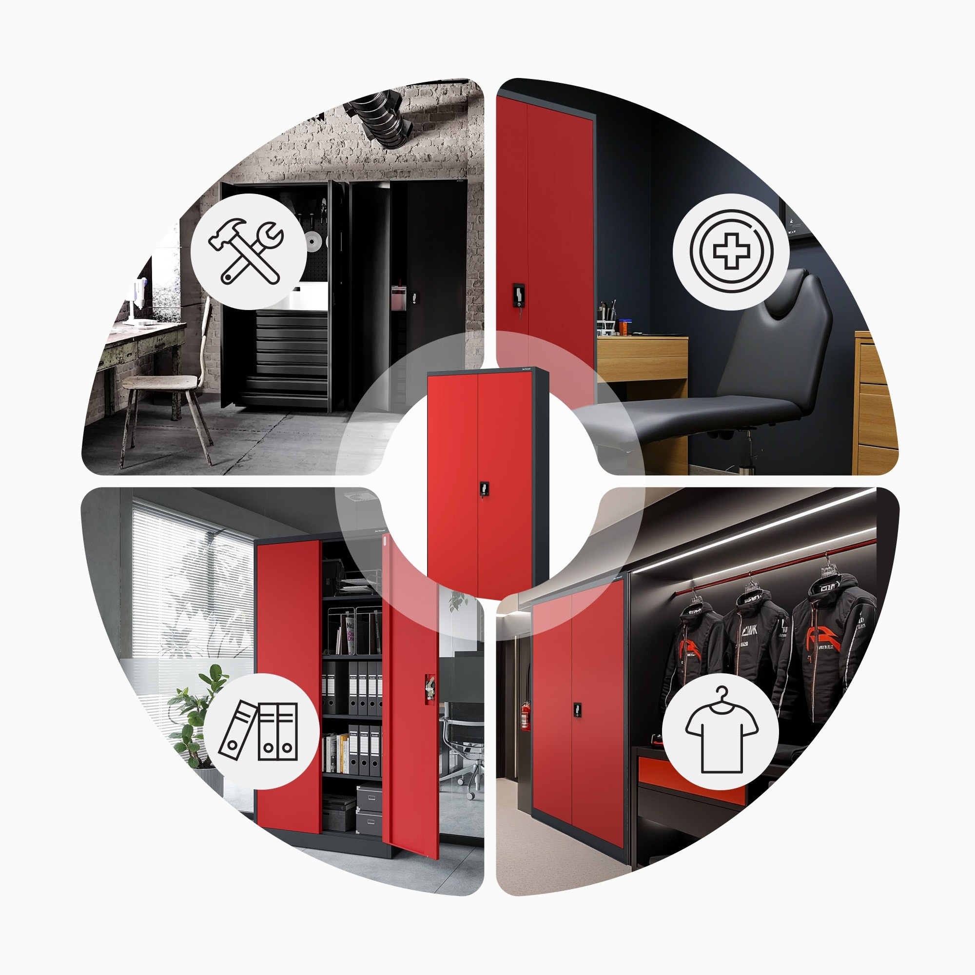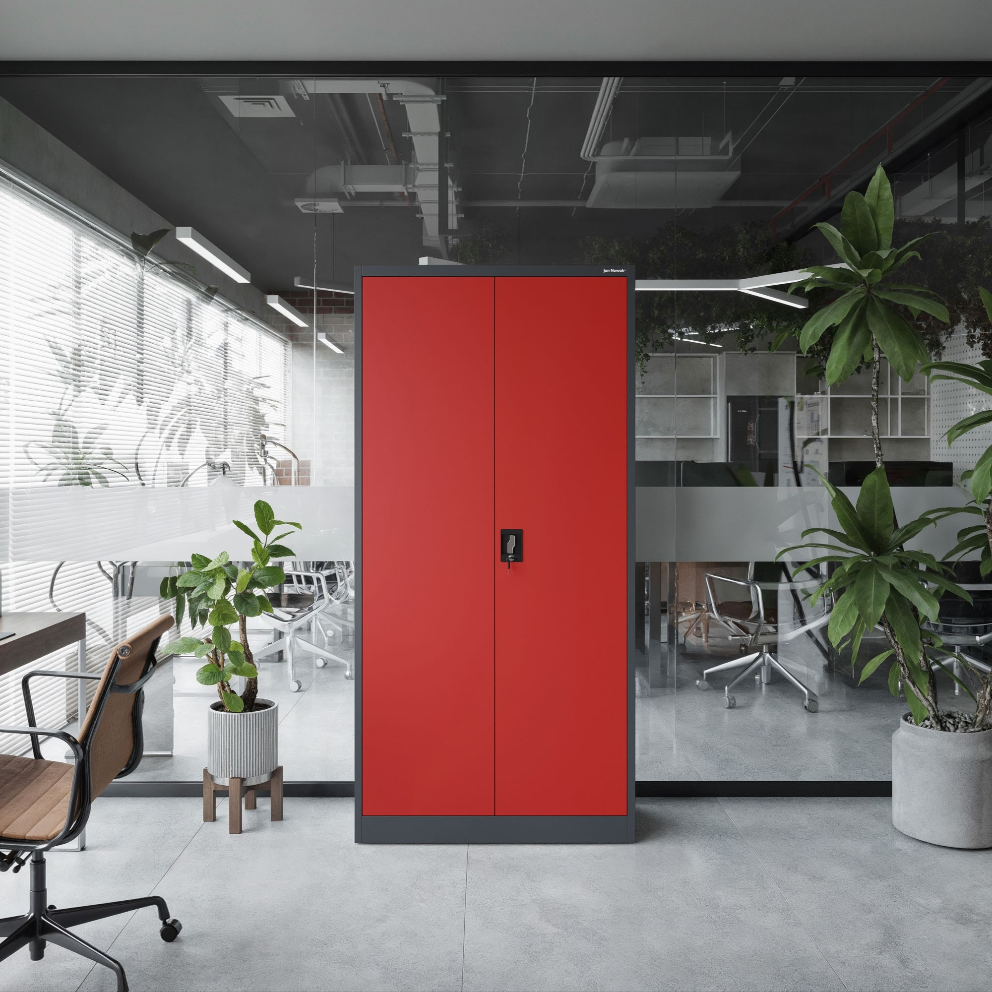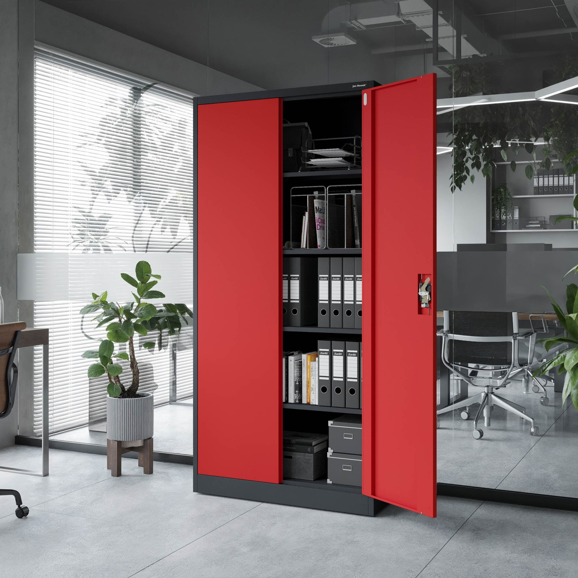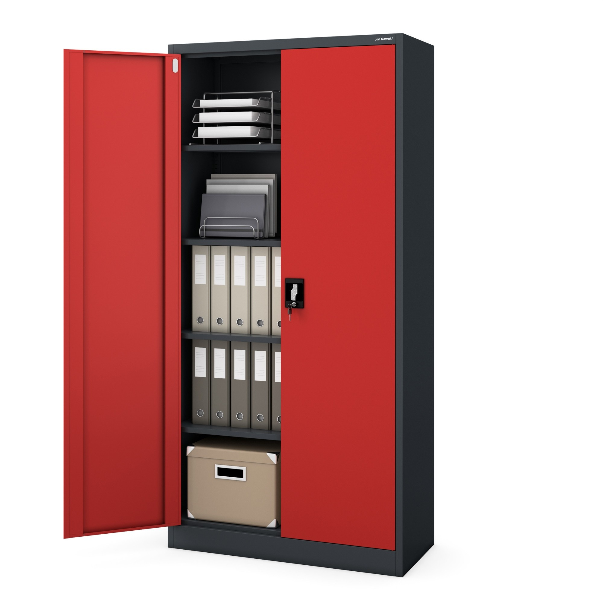JAN irodai fém iratszekrény, 900 x 1850 x 400 mm, antracit-vörös